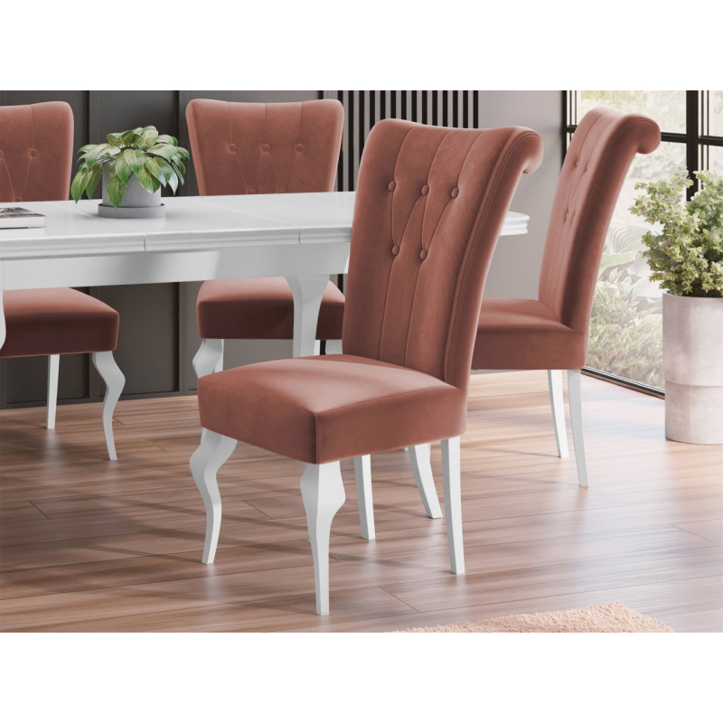 Jídelní židle ST63 je elegantní nabídka, která se použije v glamour, vintage nebo art deco provedeních. Tento styl židle je ovlivněn detaily v podobě Louisova (předních) nohou, ozdobných knoflíků na opěradle a charakteristického zvlnění na opěradle.
