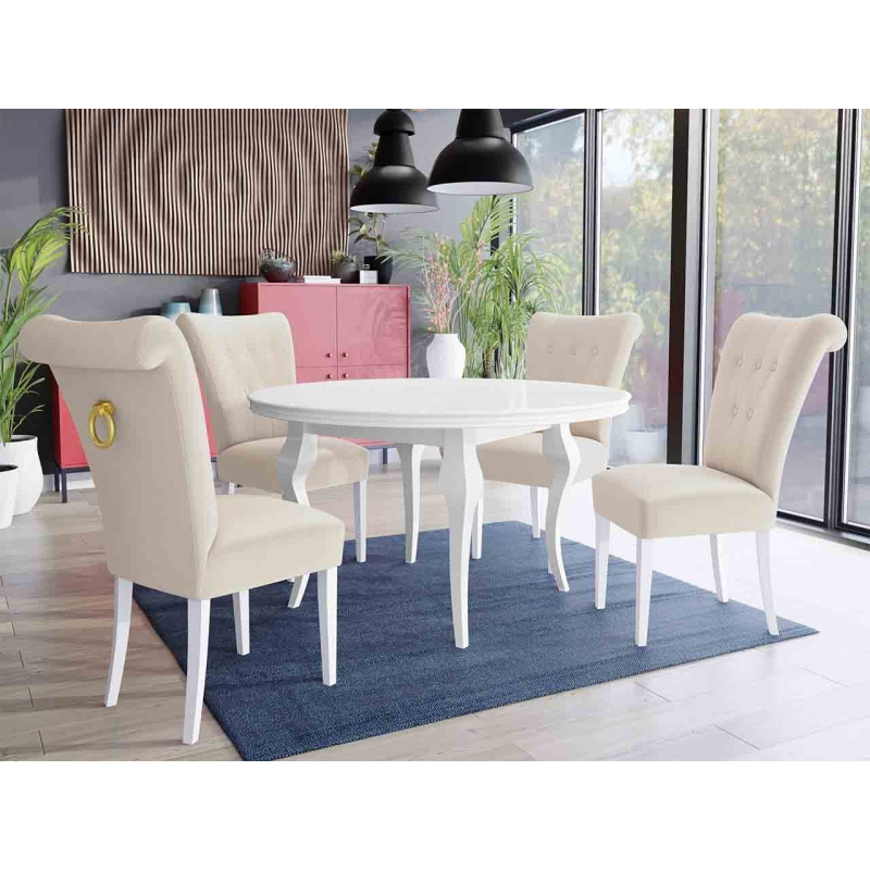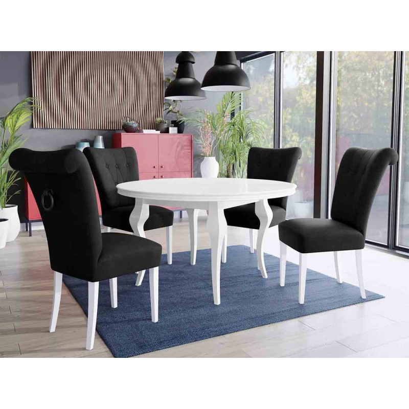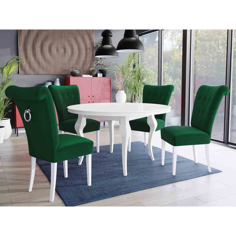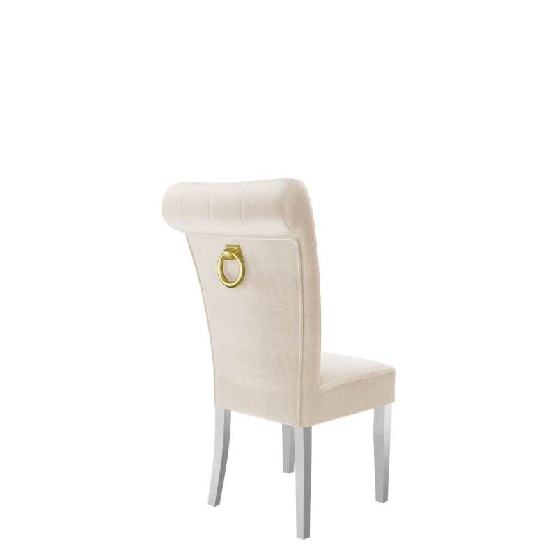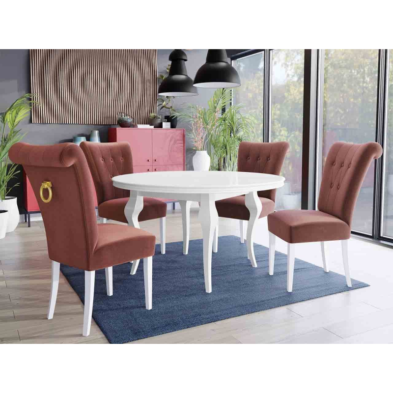 Pohodlí židle je dáno nejen jejím tvarem, ale také konstrukcí, která je podepřena dřevěným rámem a opatřena silnou vrstvou pěny. To doplňují vysoké, tvarované nohy. Díky nim vypadá jídelní židle půvabně.