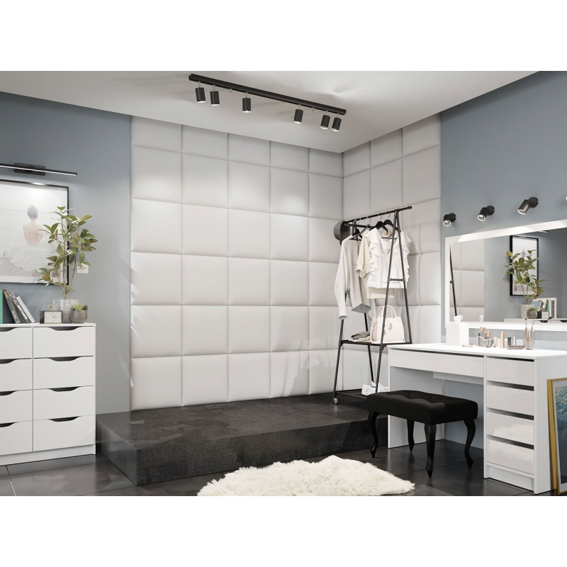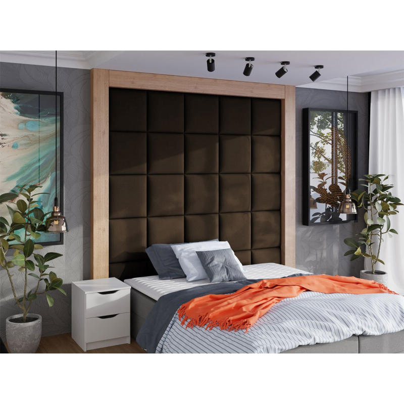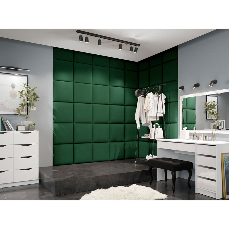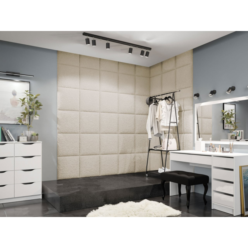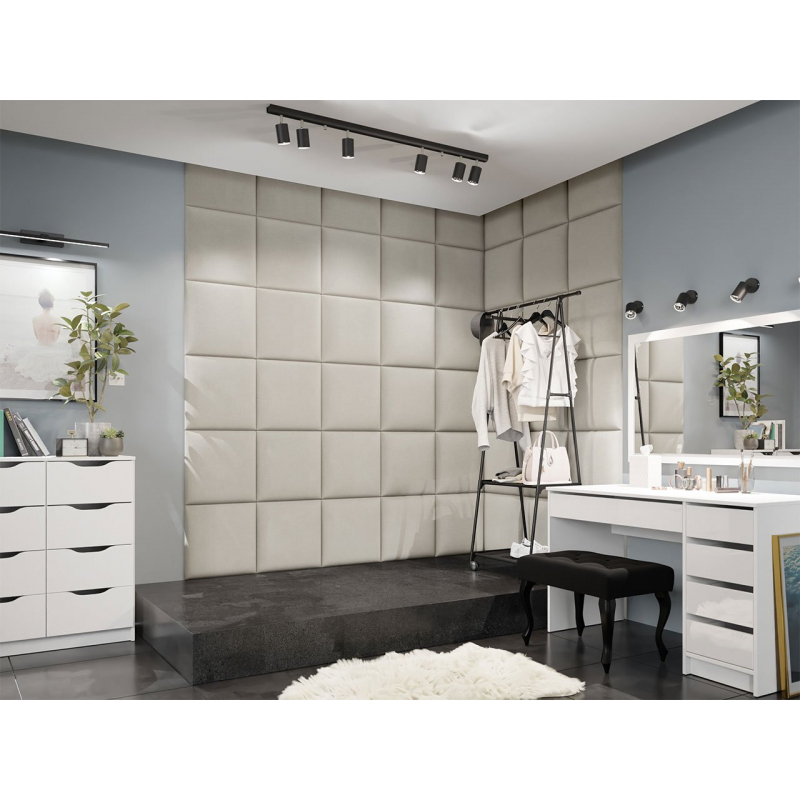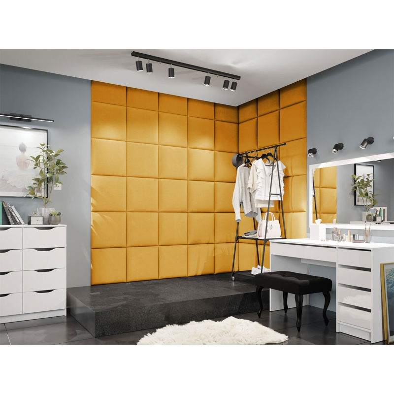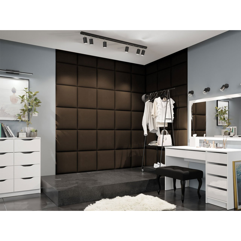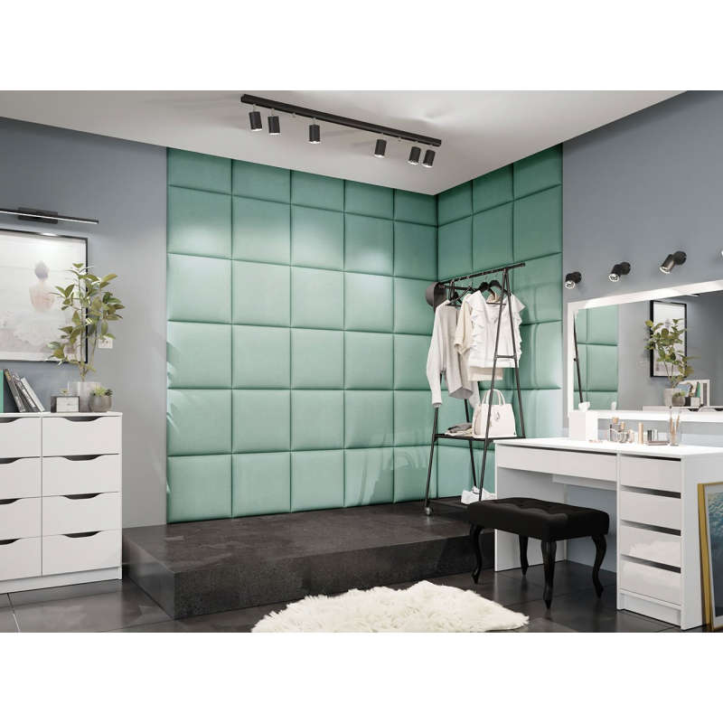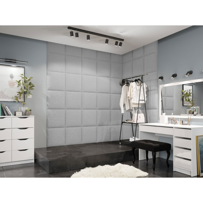 Čalouněné panely Pag ve tvaru symetrických čtverců jsou možností, jak vyzdobit interiér vašeho bytu. Po umístění na zeď vytváří zajímavý vzor a chrání omítku před nečistotami a poškozením. Měkké tvary panelů i v syrovém a chladném interiéru dodají pocit námi tak žádané útulnosti. Díky široké škále barev je lze použít v každé místnosti. Obývací pokoj, šatna i ložnice budou profitovat z módního designu stěnových panelů az jejich akustiku zlepšujících vlastností.