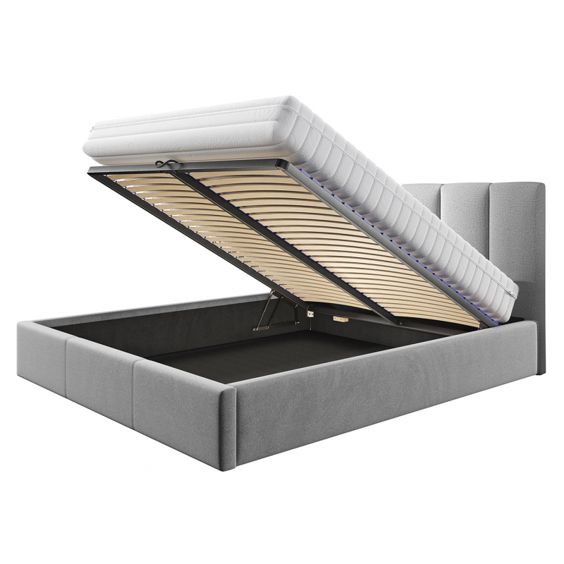 Další funkcí postele je prostorný kontejner na lůžkoviny, který se nachází pod celou plochou na spaní. Každodenní ukládání přikrývek a polštářů usnadňuje plynová pružina v úložném prostoru.