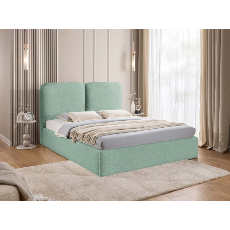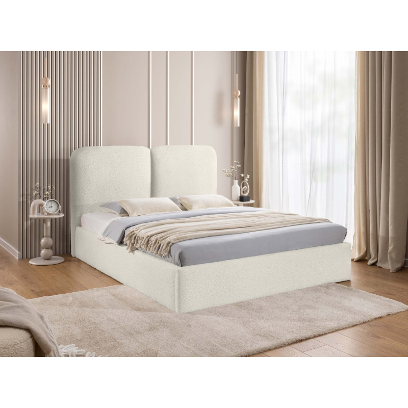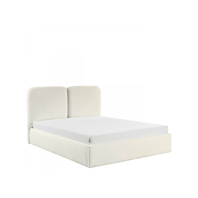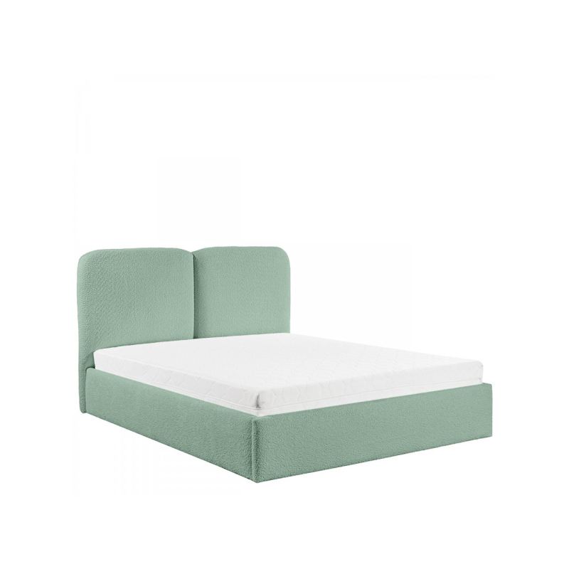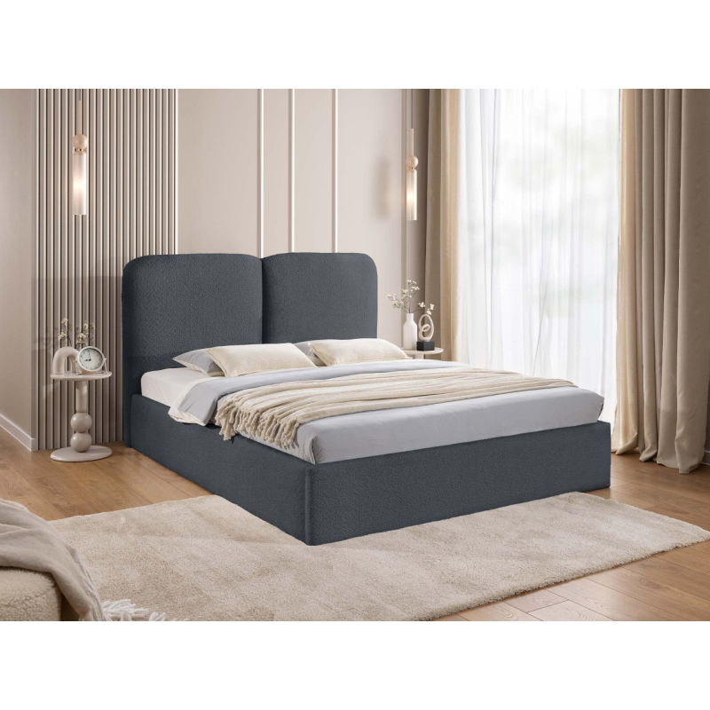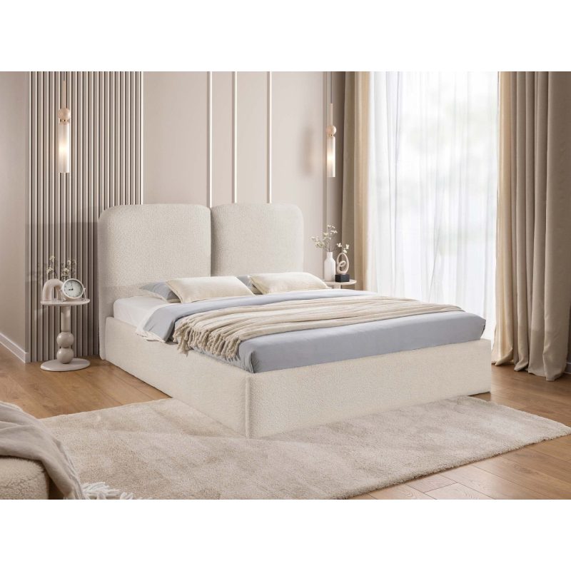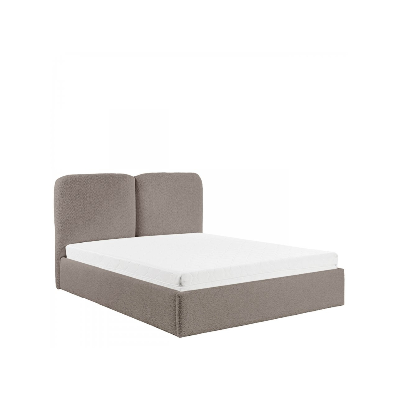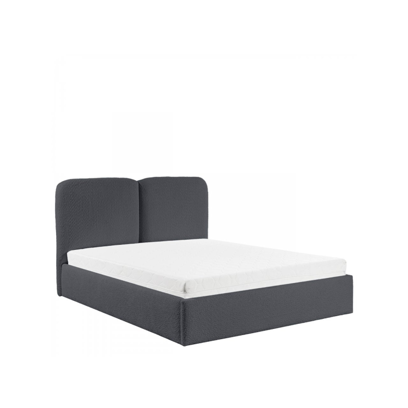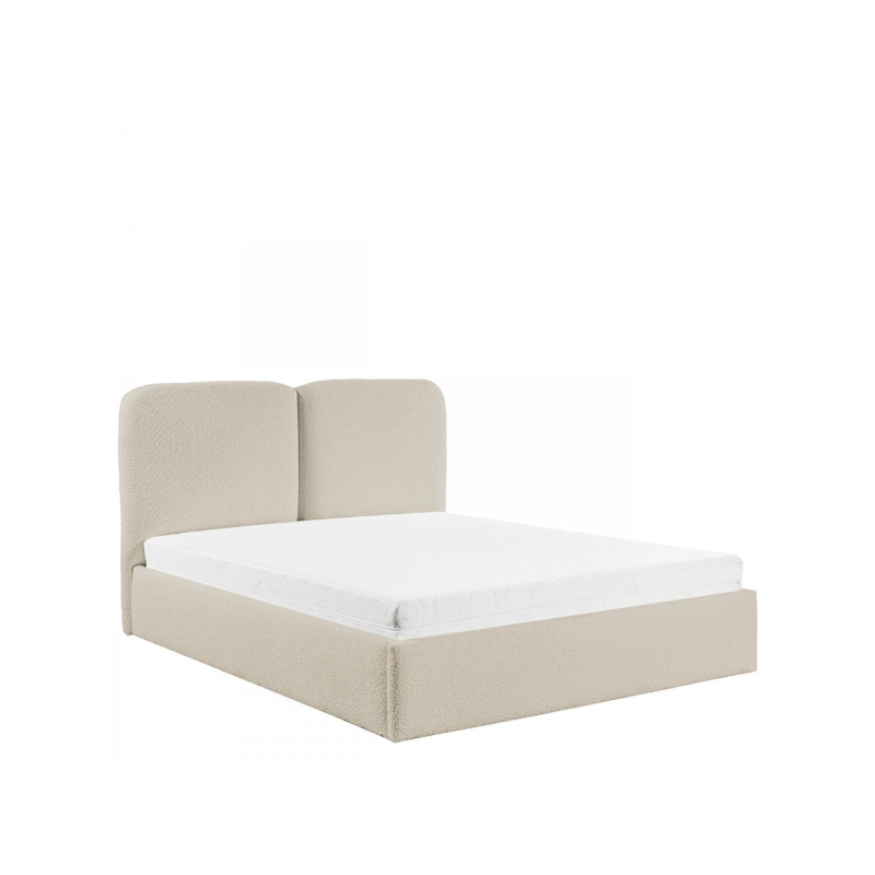 Zaoblená opěrka hlavy dodává vizuální teplo a zároveň poskytuje pohodlnou oporu zad během večerní relaxace. Praktický úložný prostor pod rámem postele je skrytou výhodou, která řeší problém s úložným prostorem – organizovaný prostor rozdělený do zón se skvěle hodí pro každodenní použití.