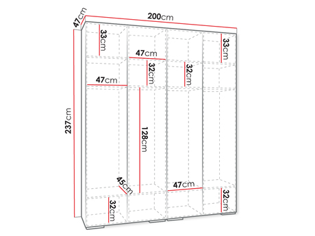 - vnitřní prostor s policemi a šatními tyčemi,