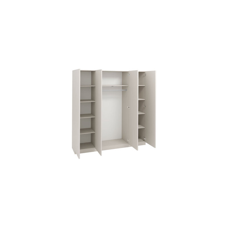 Velká šatní skříň Zulek 4D vám nabízí prostorný interiér. Přihrádky byly navrženy s ohledem na úložný prostor a nabízejí prostor pro různé předměty. Množství polic poskytuje vynikající prostor pro oblečení a věšák na šaty poslouží k zavěšení věšáků. Toto uspořádání je optimální pro obě.