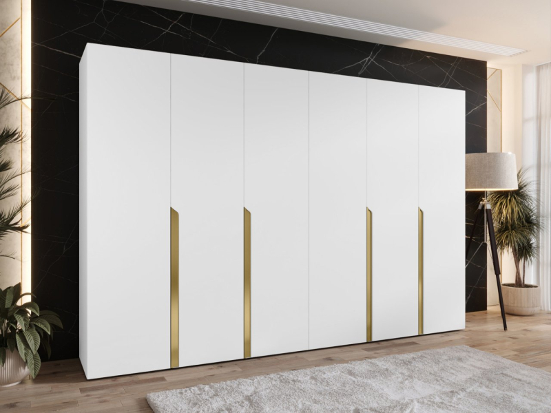 Minimalistický design této velké šatní skříně se hodí do každého interiéru. Jednoduchý tvar doplňují krásné, moderní úchytky, které dodávají celku jedinečný charakter.