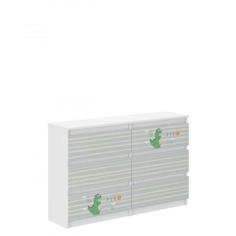 Prostorná komoda do dětského pokoje z kolekce potápět perfektně zapadne do prostoru upraveného pro batole. Barevná grafika na předních částech zásuvek zkrášlí dekor a dodá mu skutečně pohádkový charakter. Pomocí dostupných provedení můžete nábytek snadno sladit s dekorací chlapecké nebo dívčí pokoje, jakož i s požadavky sourozenců.