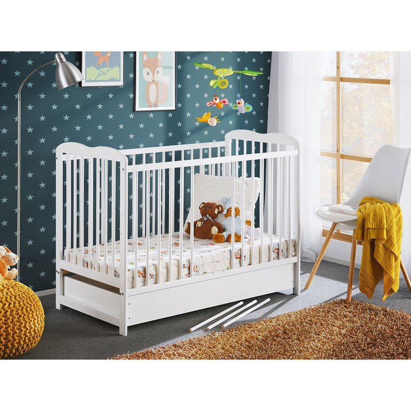 Dětská postýlka byla také vybavena prostornou zásuvkou, která umožňuje uložení ložního prádla a dalších drobných předmětů.