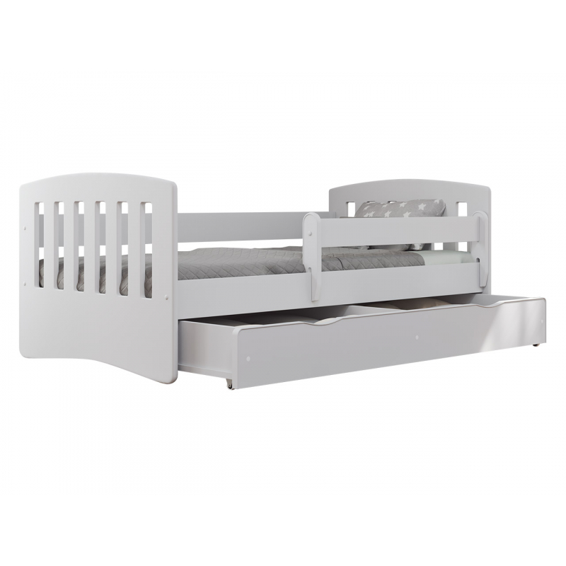 Výhodou dětské postele je kromě pohodlí a přátelského vzhledu i prostorná zásuvka na lůžkoviny a kolejnička, která chrání dítě před vypadnutím během spánku. Zábrana je pohyblivá, takže ji můžete odstranit, když ji dítě už nepotřebuje.
