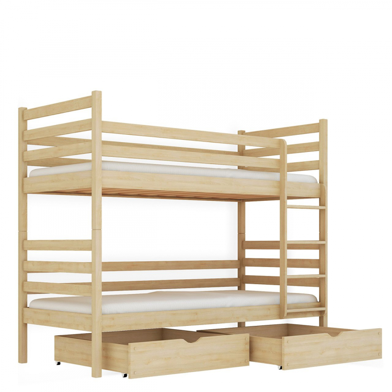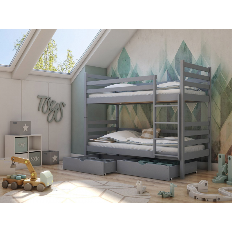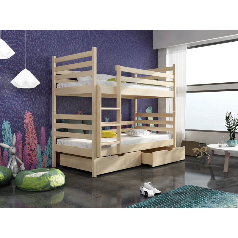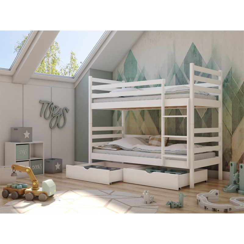 Děti, přestože mají společenskou místnost, musí mít svůj prostor pro relaxaci. Patrová postel Aero poskytne nejen pohodlné místo na spaní a odpočinek, ale také trochu soukromí. Je vyrobena z vysoce kvalitního borovicového dřeva, které zajišťuje spolehlivé a bezpečné používání. Pod patrovou postelí Aero najdete i perfektní úložný prostor pro šikovné doplňky nebo hračky! K dispozici jsou prostorné zásuvky, které usnadní organizaci věcí. V prvním patře, kam se lze dostat po žebříku, a v přízemí je pohodlná jednolůžková postel vybavena roštem pro matraci dle vašeho výběru. Patrová postel Aero je univerzální model - lze ji dimenzovat a oddělit, čímž poskytuje dvě samostatné postele.