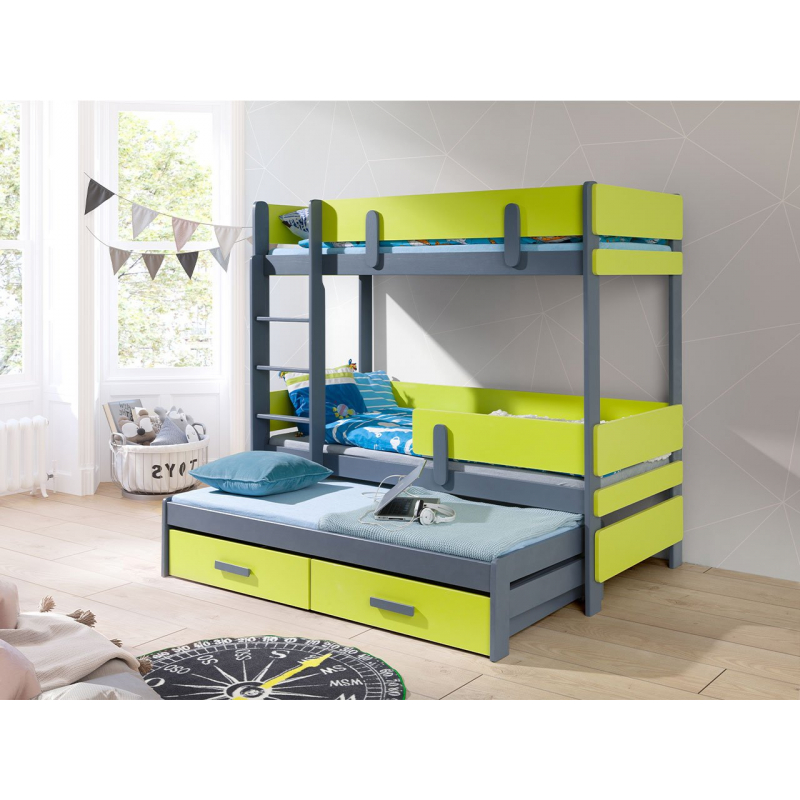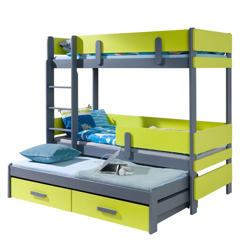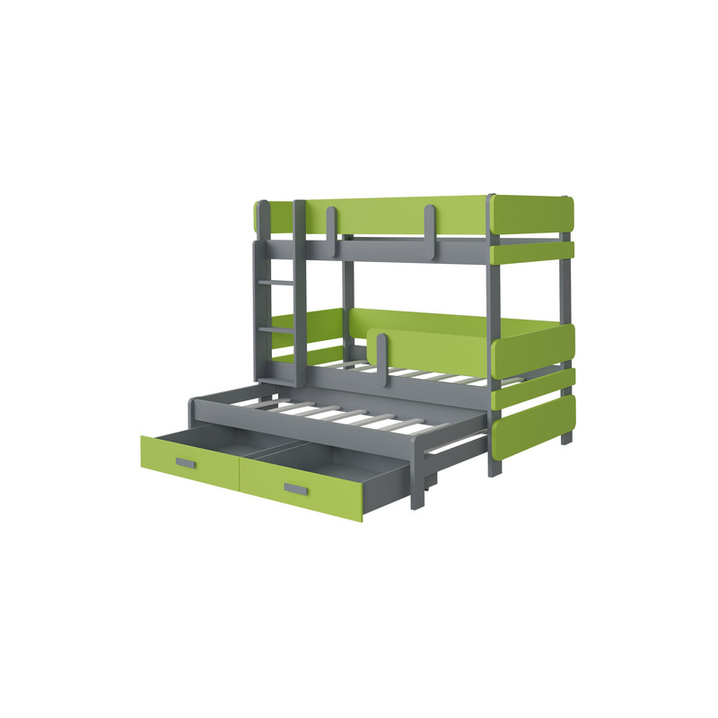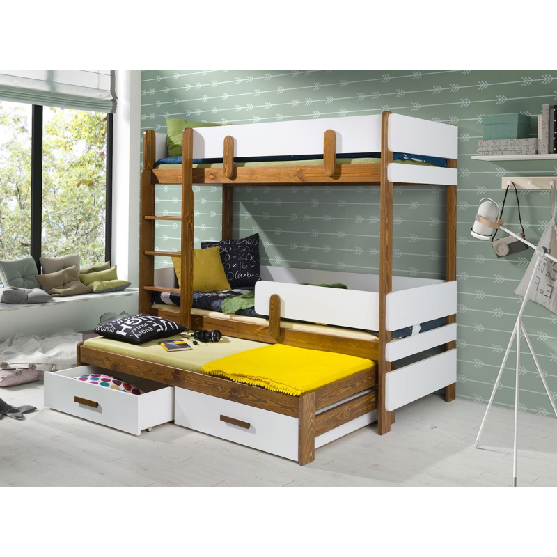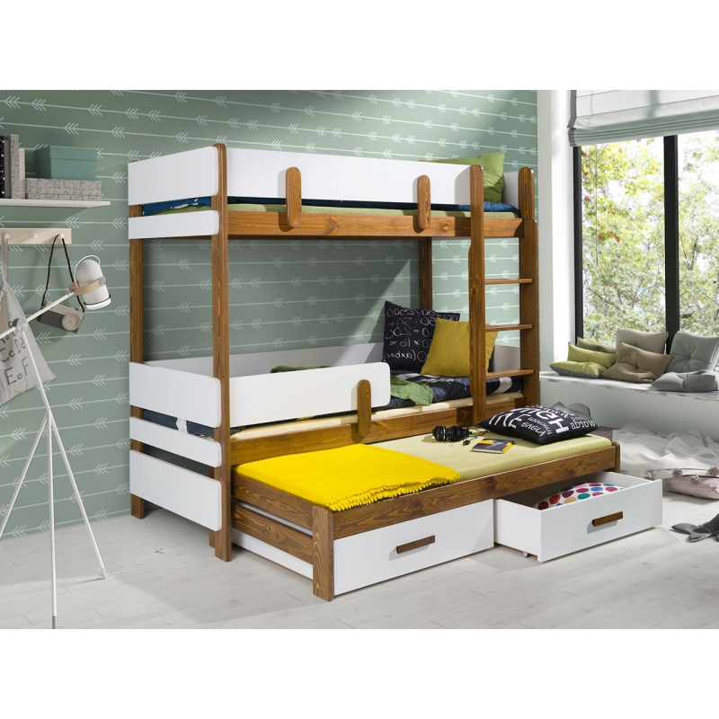 Hledáte patrovou postel pro tři děti? Univerzální, bezpečné, maximálně využívající prostor? Patrová postel Petenti III 80 vás nezklame. Úplně dole se nachází další, třetí prostor na spaní. Co se týče bezpečnosti, je to díky pevným materiálům a zábradlí. Díky nim se výrazně sníží riziko pádu z postele. Žebřík je velmi stabilní, jeho stranu si můžete zvolit sami.
