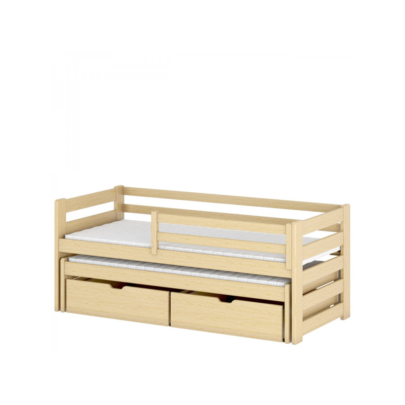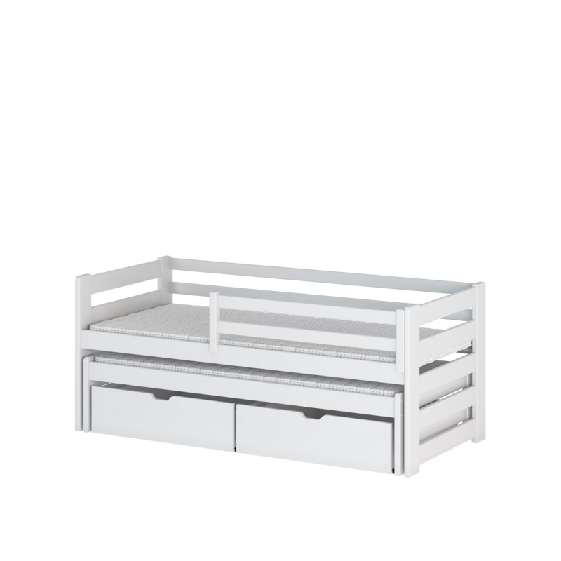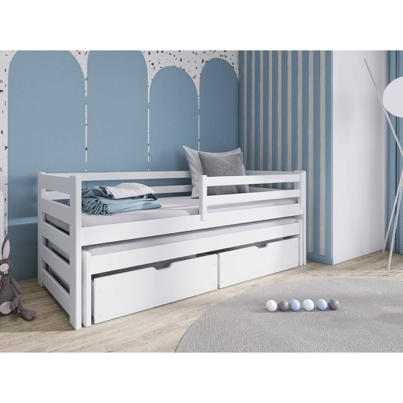Vyberte si dětskou postel Pilksis 90 s boční zábradlím! Díky svému univerzálnímu designu se perfektně hodí do každého interiéru. Tato rozkládací postel je praktickou volbou do dětského pokoje. Když máte málo místa pro kreativní hraní, můžete prostor snadno rozšířit. Je také ideální k přespávání s kamarádem. Zábradlí kolem postele zabraňuje náhodným pádům v noci. Tento model má také dvě hluboké zásuvky, které udrží pokoj uklizený a poskytnou dostatek úložného prostoru na přikrývky, polštáře a hračky.