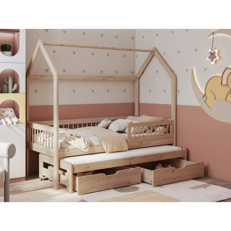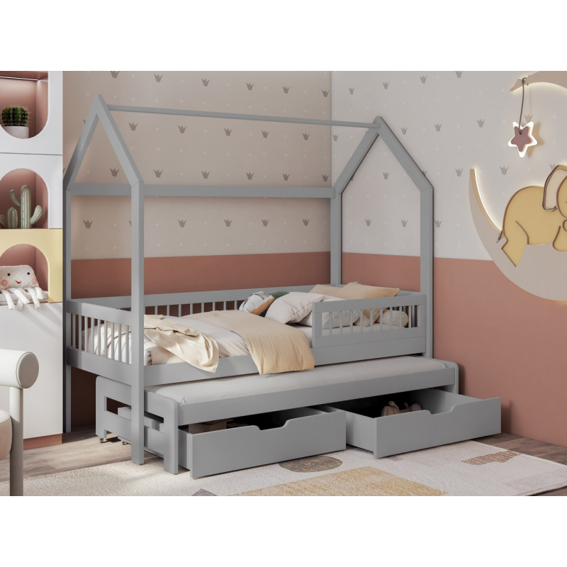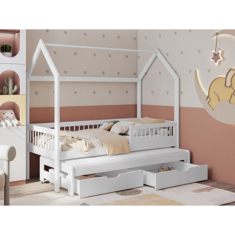 Roztahovací dětská postel Karlix 80 se šuplíky je půvabnou nabídkou pro každé dítě. Vyniká moderním designem a inovativními řešeními. Dětská postel domek je vybavena dvěma prostornými šuplíky, které se určitě budou hodit na další povlečení, polštáře a hračky. S nejmenšími nikdy nemůžete mít příliš mnoho úložného prostoru navíc. Navíc díky vysouvacímu lůžku se do ní vejdou až dvě děti, což je skvělé, přenocuje-li kamarád nebo kolega.