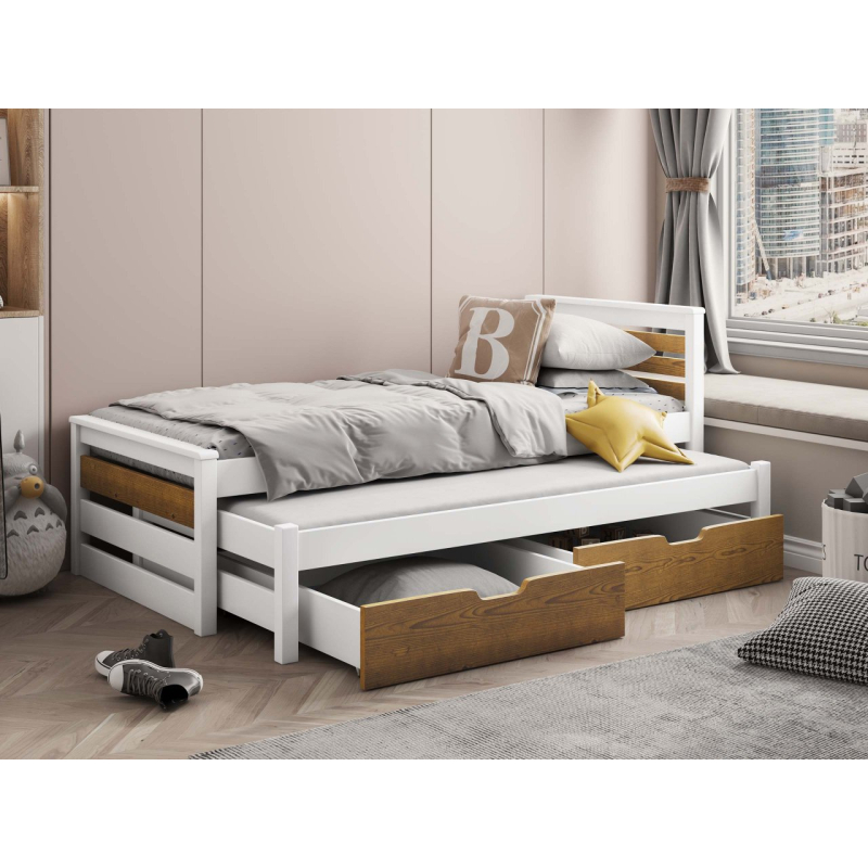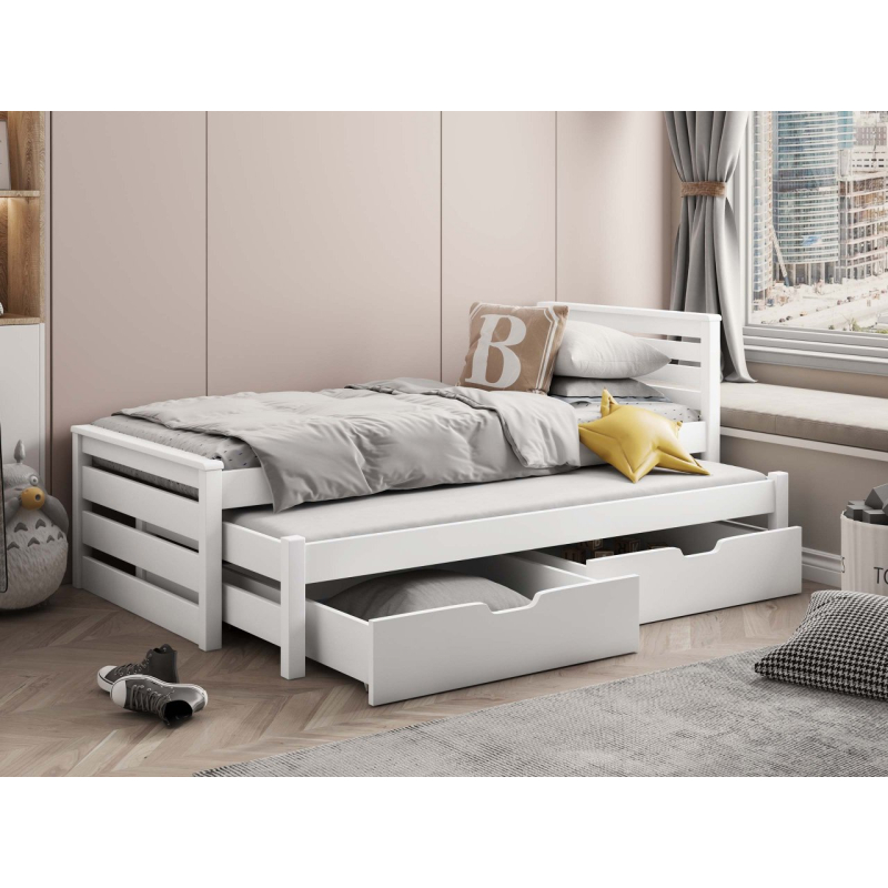 Další výhodou roztahovací postele Farik 90 cm jsou její prostorné zásuvky na ložní prádlo. Tyto prostorné přihrádky jsou ideální i pro diskrétní uložení lehkého příslušenství. Dětské oblečení, drobné hračky či jiné vychytávky – do šuplíků můžete umístit různé předměty.