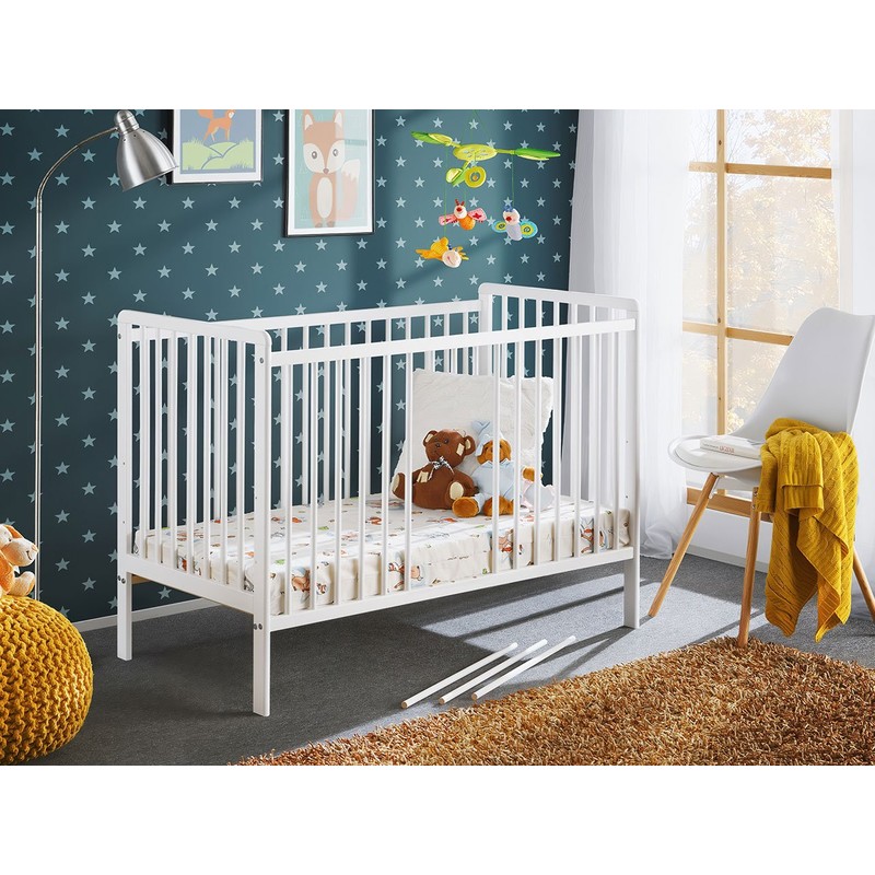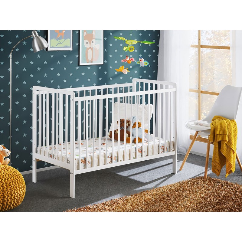 Dětská postýlka s matrací Liatra II 120x60 je model s minimalistickým designem v bílé barvě, který je ideální pro dětský pokoj nebo ložnici rodičů. Postýlka byla vyrobena z borovice, která je certifikována FSC (zaručuje, že výrobky pocházejí z lesů obhospodařovaných zodpovědným způsobem).