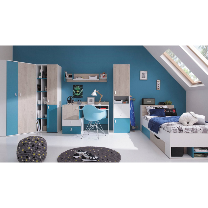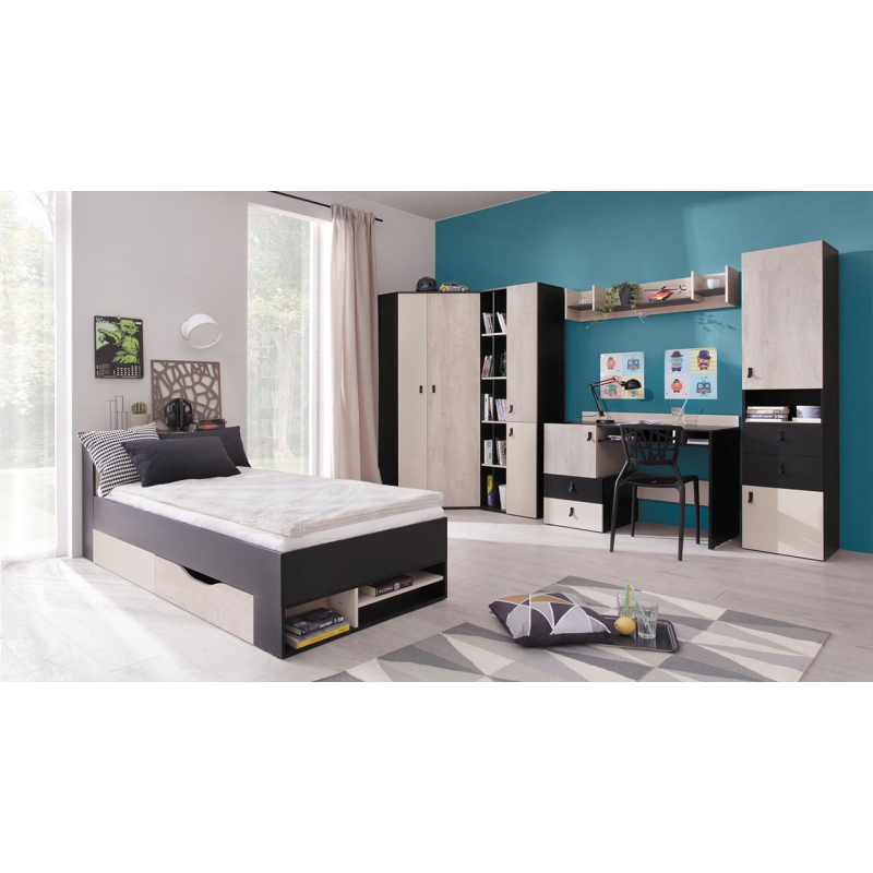 Sada kombinuje některé z nejužitečnějších prvků ve studentské pokoji s praktickým psacím stolem v čele. Stůl je vybaven skříňkou, zásuvkami a policemi a usnadní dítěti domácí úkoly i mimoškolní vášně.