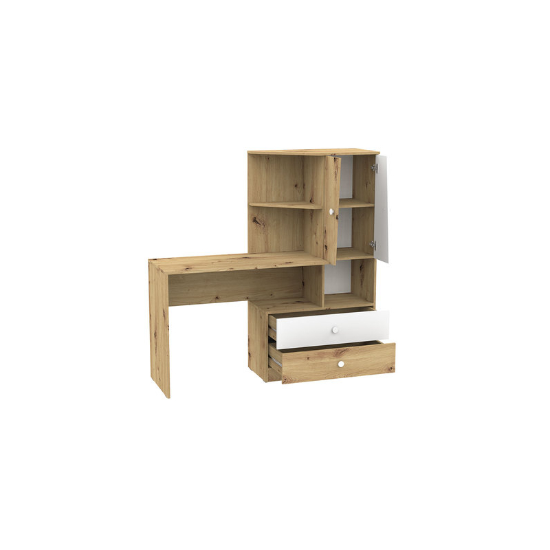 Velkou výhodou setu Wurak III je, že se nemusíte starat o skladování materiálů potřebných při výuce vašeho dítěte. Psací stůl je integrován do malé knihovny, v níž jsou kromě otevřených polic a přihrádek i uzavřené skříňky a zásuvky na praktické příslušenství.