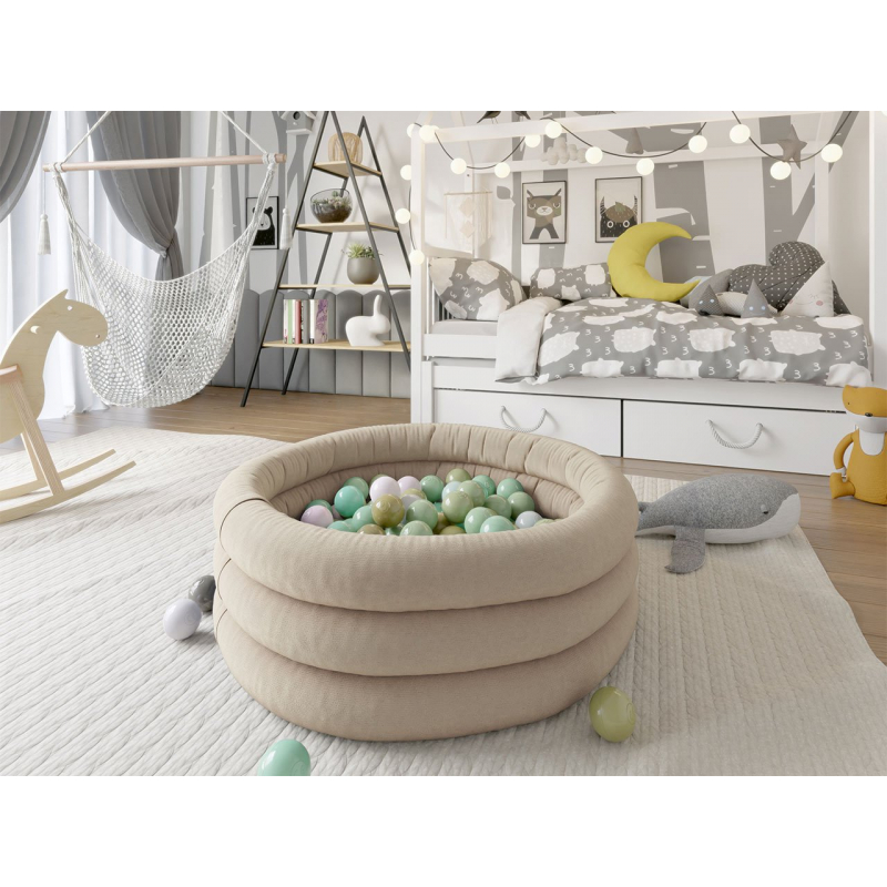 Díky vysoce kvalitním potahovým tkaninám je suchý bazén s míčky měkký a příjemný na dotek. Široká škála barev usnadňuje přizpůsobení bazénu dekoru dětského pokoje. Snadno si vyberete to správné zbarvení pro chlapce a také pro dívku. Univerzální barvy se perfektně hodí do pokojů upravené pro sourozence.