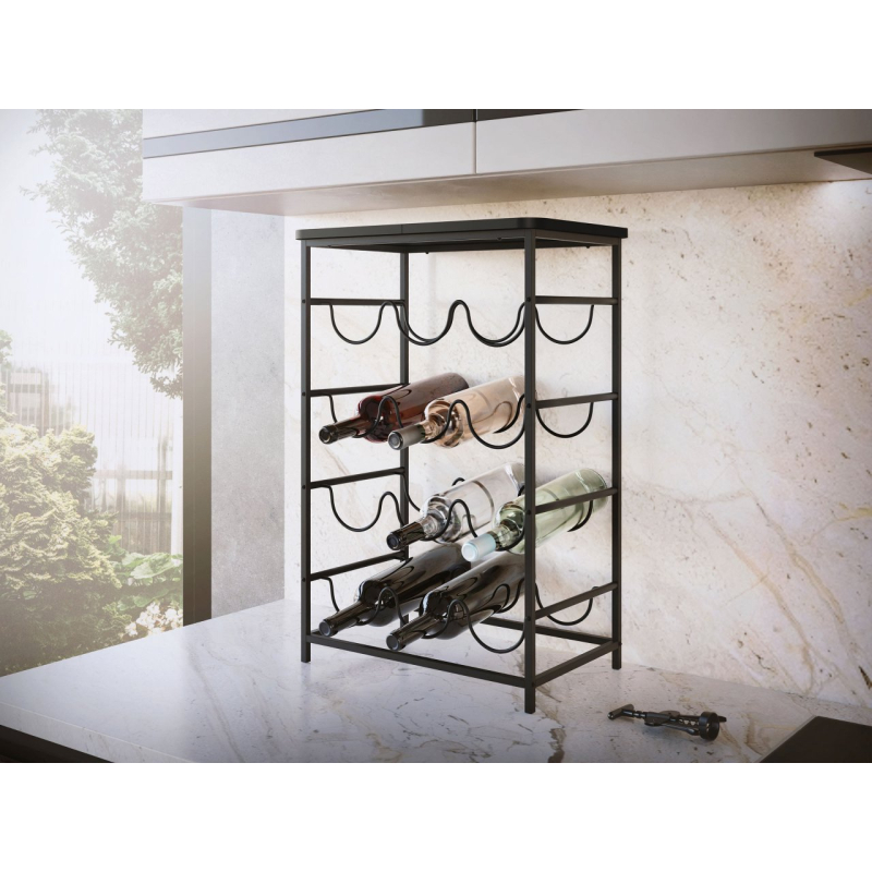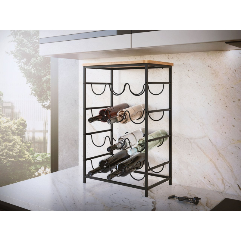 Stylový a praktický stojan na víno Lezku na 12 lahví je perfektním řešením pro milovníky dobrého vína. Vyrobeno z kovového rámu a dřevěného prvku nahoře, zajišťuje stabilitu a bezpečné skladování lahví ve vodorovné poloze, což pomáhá zachovat jejich plnou chuť a aroma.