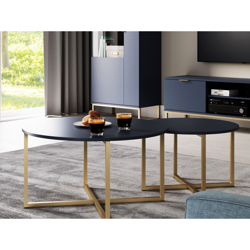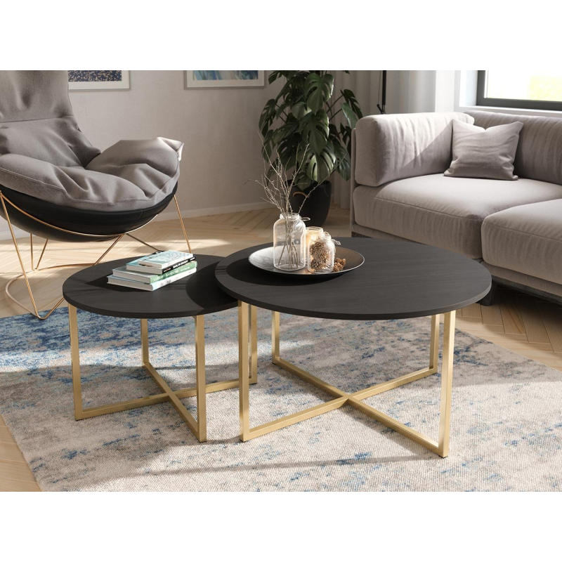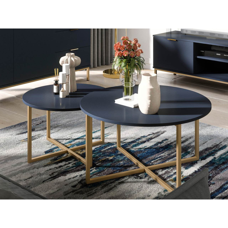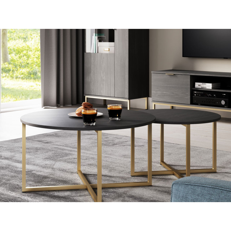 Souprava kulatých konferenčních stolků Finoti je zajímavým a efektním prvkem výzdoby obývacího pokoje. Originální design a nadčasové barvy zapadnou do interiéru zařízeného v glamour a moderním stylu.