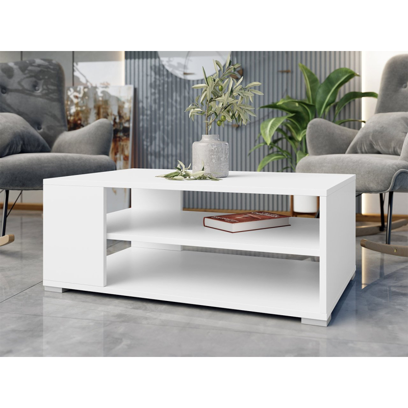 Bílý konferenční stolek nabízí také dvě prostorné police, na které si můžete odložit knihu, sklenice, tablet nebo jiné předměty. Díky tomu budete mít vše na dosah ruky. Bílá barva je univerzálním řešením, které se hodí do každého stylistického aranžmá, od klasických, přes moderní, až po Hamtops či skandinávské.