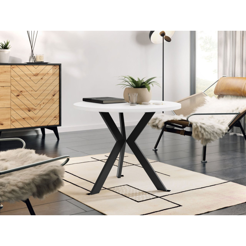 Kulatý konferenční stolek STK M6 je skvělým společníkem na odpolední kávu v pohodlí domova. Módní styl ozdobí interiér zařízený v moderním nebo industriálním stylu, v závislosti na barvě pracovní desky.