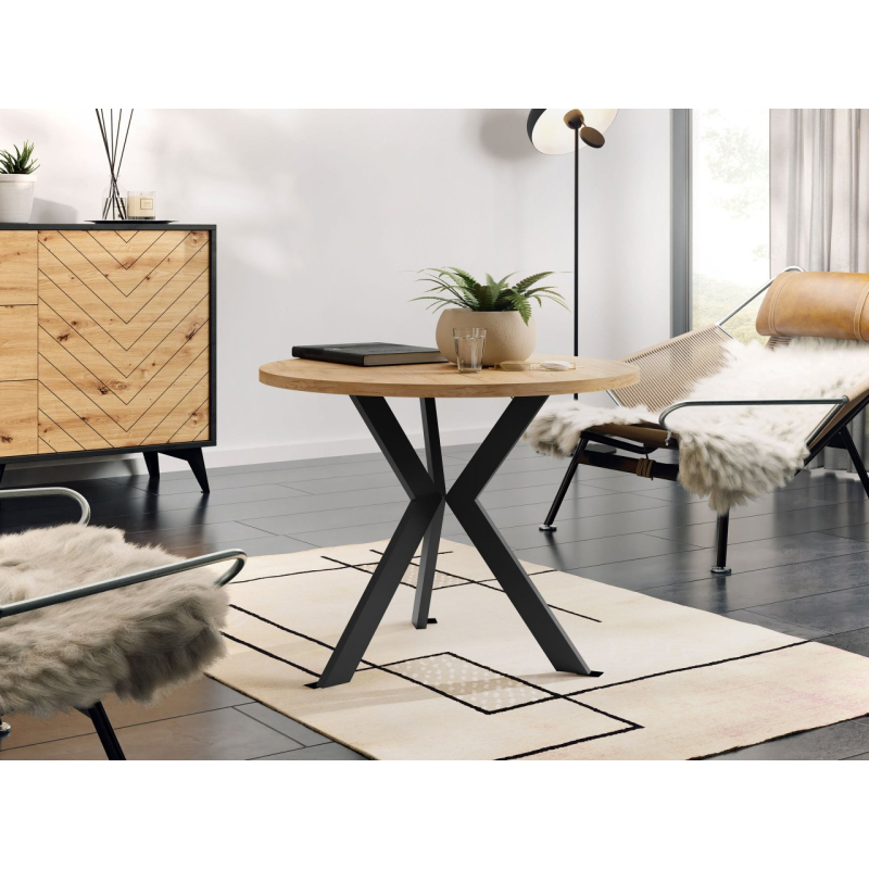 Ergonomický tvar loftového konferenčního stolku zapadne i do malého prostoru obývacího pokoje. Podnož nábytku je výrazným dekoračním prvkem. Kovová konstrukce je zodpovědná za odolnost stolu.
