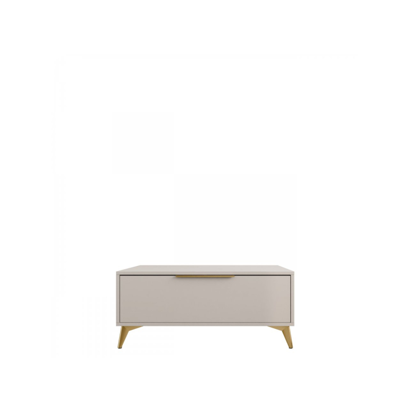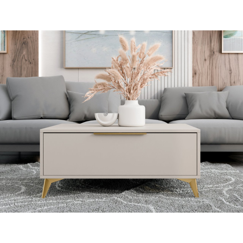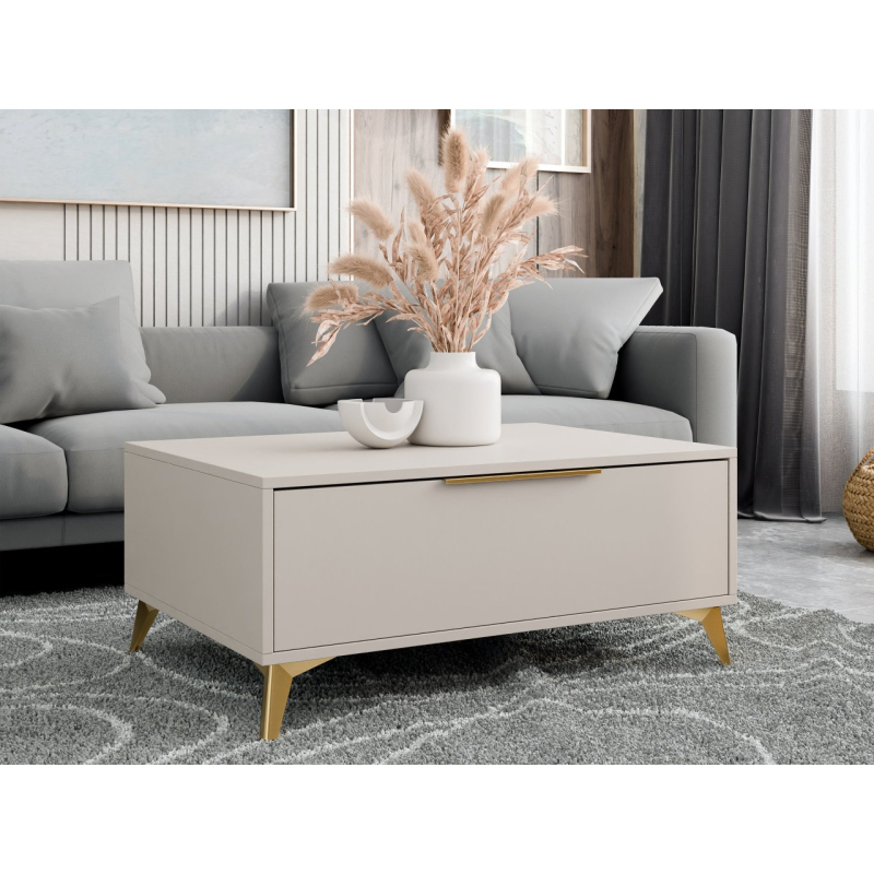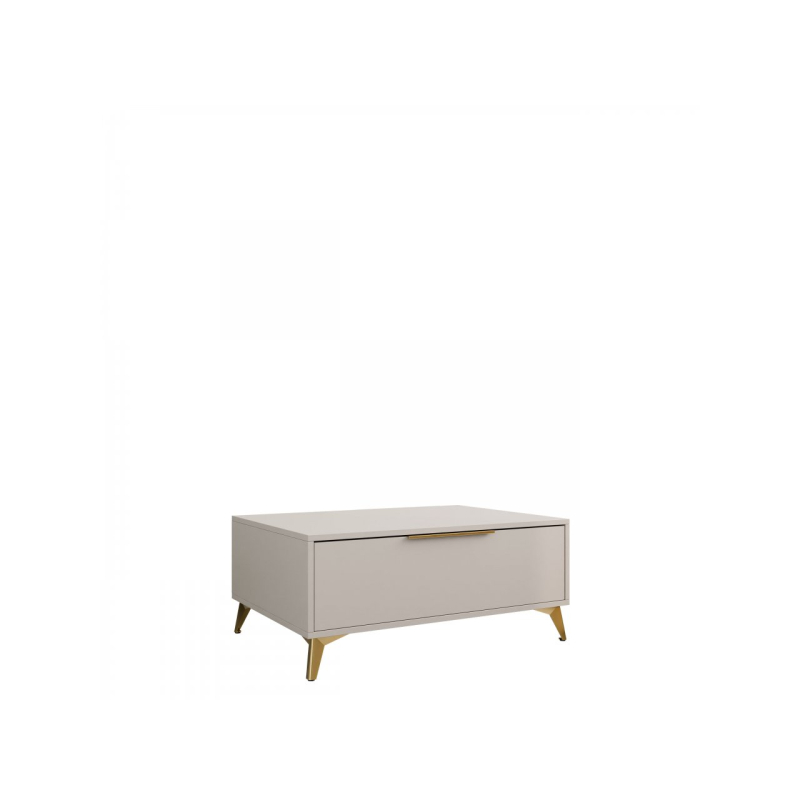Konferenční stolek Siprynt 1SZ se šuplíkem je elegantní nabídka, která doplní relaxační koutek ve vašem obývacím pokoji. Na základě vysokých kovových nohou zlaté barvy působí velice stylově.