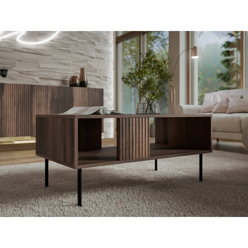 Proč si ceníme konferenčního stolku Ostani? Za prvé, pro dobrý design – není nic zbytečného, díky čemuž je lavice skromná, ale stále vypadá šik. Další výhodou je funkčnost. V tomto modelu jej poskytuje prostorný úložný prostor umístěný pod deskou. Tato praktická police diskrétně uloží časopis, notebook a drobnou elektroniku.