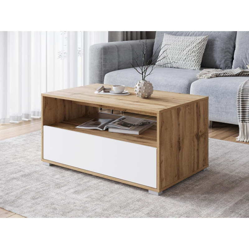 Konferenční stolek s policí vám umožní pohodlné uložení knih, časopisů, elektroniky nebo dálkových ovladačů. Nejužitečnější položky budete mít vždy na dosah ruky. Skrytý úložný prostor za křídlovými dvířky poskytuje dodatečný prostor pro předměty, které chcete skrýt před zraky hostů, díky čemuž bude váš obývací pokoj dokonale uklizen.
