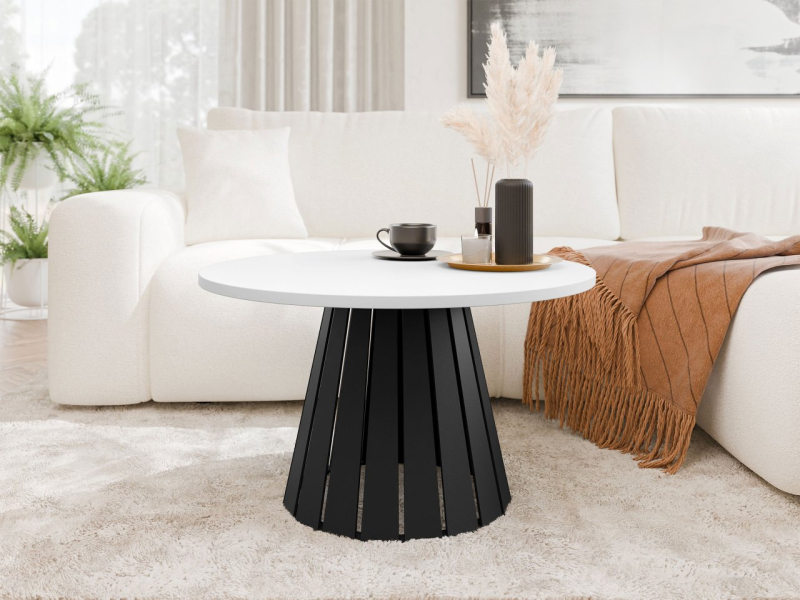 Hledáte kousek, který doplní váš obývací pokoj? Doporučujeme kulatý konferenční stolek Kroulon. Je ideální do elegantních, minimalistických interiérů. Jeho deska o průměru 75 cm pohodlně udrží šálek kávy nebo knihu, kterou čtete na gauči.