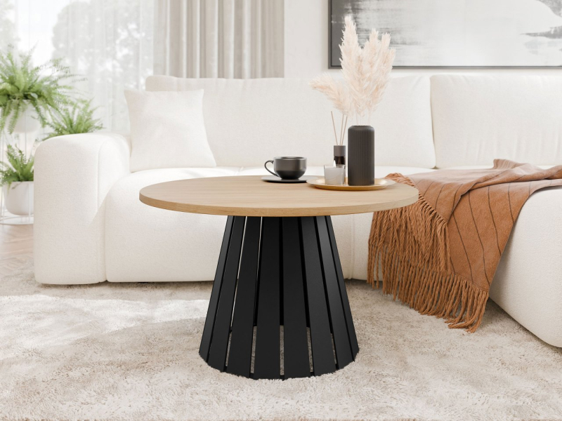 Největší výhodou konferenčního stolku je jeho výrazná černá základna s prolamovaným designem, která v kombinaci se zajímavou barvou desky vytváří praktický a designový akcent ve vašem obývacím pokoji.