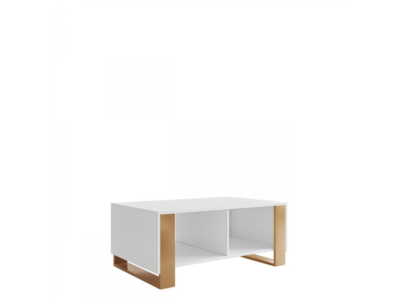 Při navrhování obývacího pokoje je důležité jej doplnit menšími kusy nábytku. Konferenční stolek Nalker je rozhodně jednou z takových možností. Kombinuje světlou barvu se zlatými prvky v podobě nohou připomínajících kluzáky.