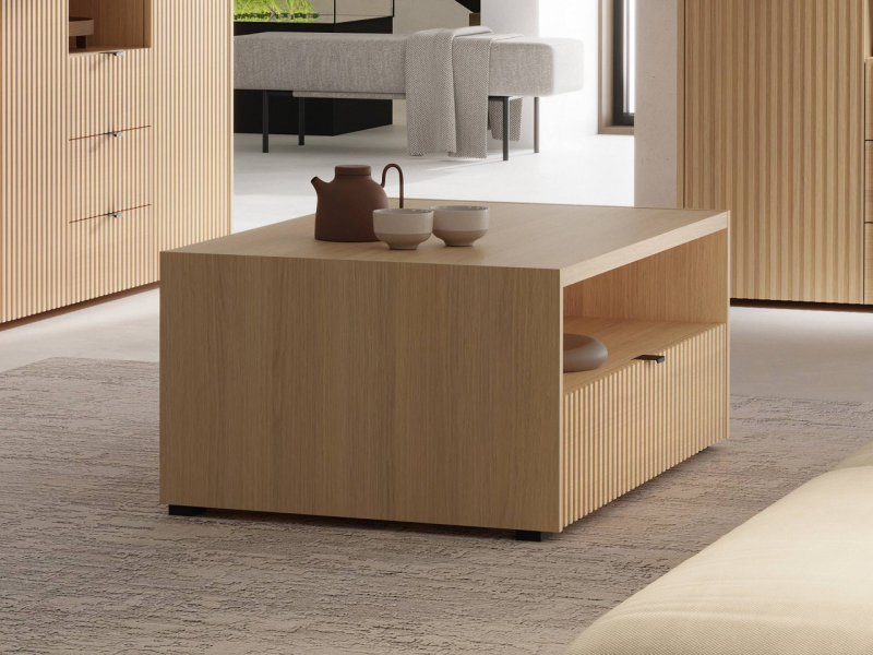Hledáte ideální konferenční stolek do svého obývacího pokoje? Siroti 1SZ SR04 je tou správnou volbou. Zaujme moderním designem, přírodním vzhledem a funkčností. Je ideálním doplňkem k rohovému gauči nebo pohovce ve vašem relaxačním koutku. Můžete na něj položit šálek kávy nebo talíř s dortem a je zde dokonce místo pro dekorace nebo vázu s čerstvými květinami. Tento konferenční stolek se zásuvkou také poskytuje vynikající úložný prostor. Prostorná zásuvka je ideální pro kabely, křížovky, elektroniku nebo jiné užitečné doplňky. Nabízí také velkou polici na knihy, brýle nebo dálkové ovládání k televizi.