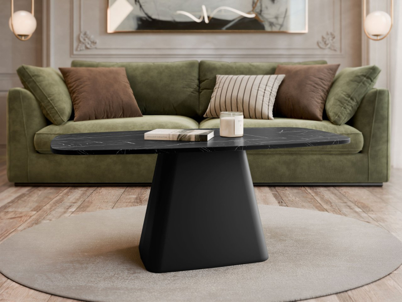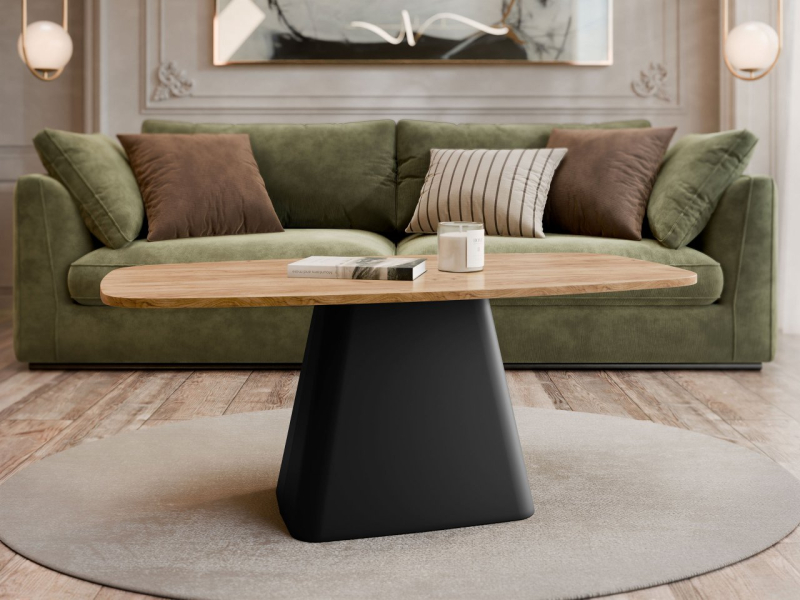 Moderní konferenční stolek Dinokio se vyznačuje minimalistickým designem, který dokonale doplňuje současné interiéry. Zaoblená horní deska kontrastuje s pevnou geometrickou základnou. Tento model je ideální do obývacích pokojů zařízených v moderním, skandinávském nebo loftovém stylu.