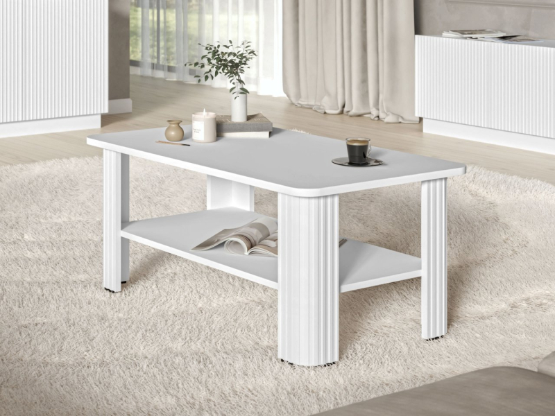 Tento moderní model nabízí také praktický úložný prostor. Těsně pod horní deskou stolu se nachází prostorná plocha, ideální pro knihy, dálkové ovladače nebo sluchátka. Konferenční stolek Tirisos s poličkou zvyšuje funkčnost relaxační zóny obývacího pokoje, perfektně se hodí do kanceláře a stále častěji nachází své místo i v pokojích teenagerů.