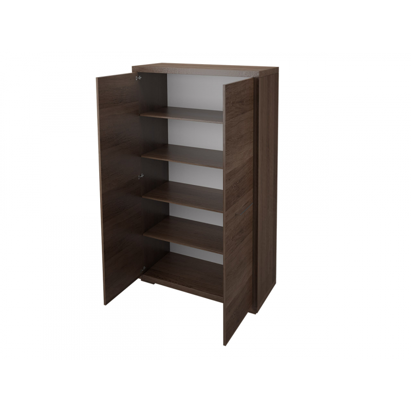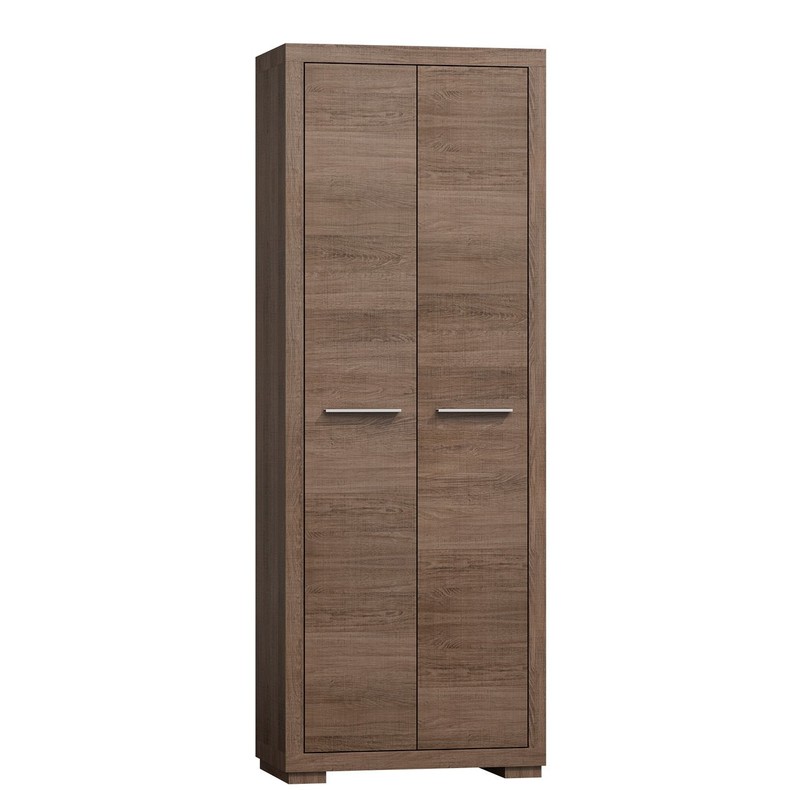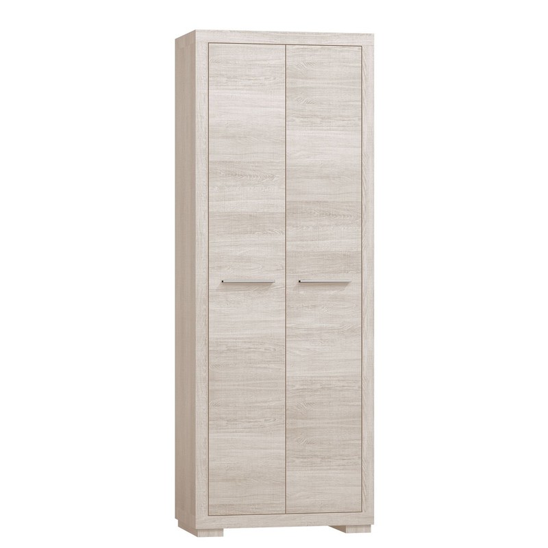 Dvoudveřová skříň je vyrobena z masivní laminované desky, jejíž hrany byly zesíleny ABS dýhou, což zaručuje vysokou kvalitu. Je k dispozici v několika nadčasových barvách, přizpůsobuje se současným interiérovým trendům a poskytuje ideální místo pro ukládání oblečení a běžných předmětů.