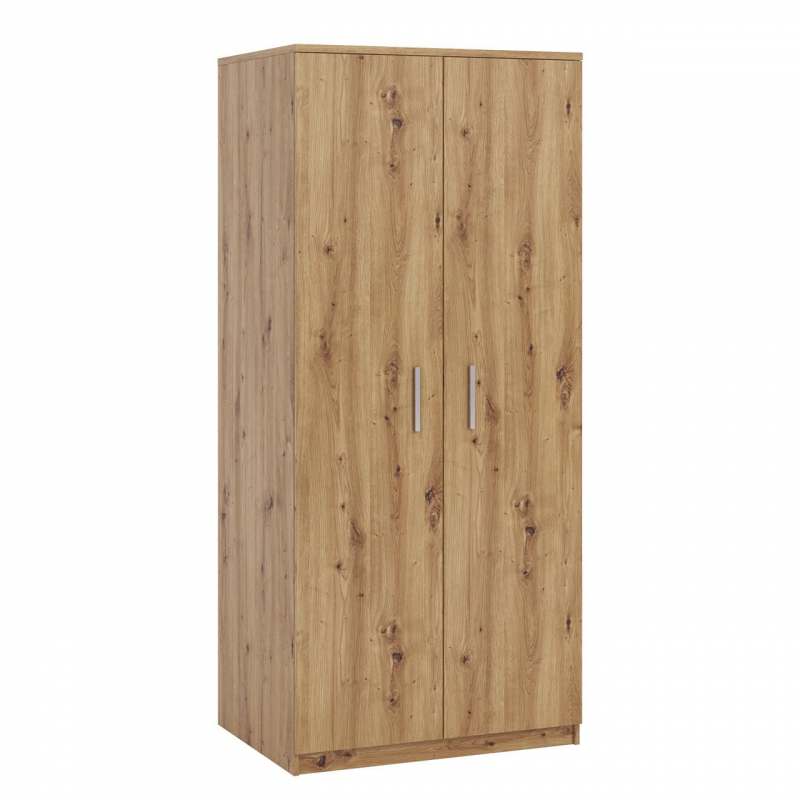 Dvoudveřová skříň Kler je zodpovědná za efektivní uložení oblečení v obývacím pokoji, ložnici a šatníku. Promyšlené uspořádání polic a věšáků na šaty poskytuje optimální podmínky pro složené trička i kalhoty, jakož i pro bundy a šaty visící na ramenou.