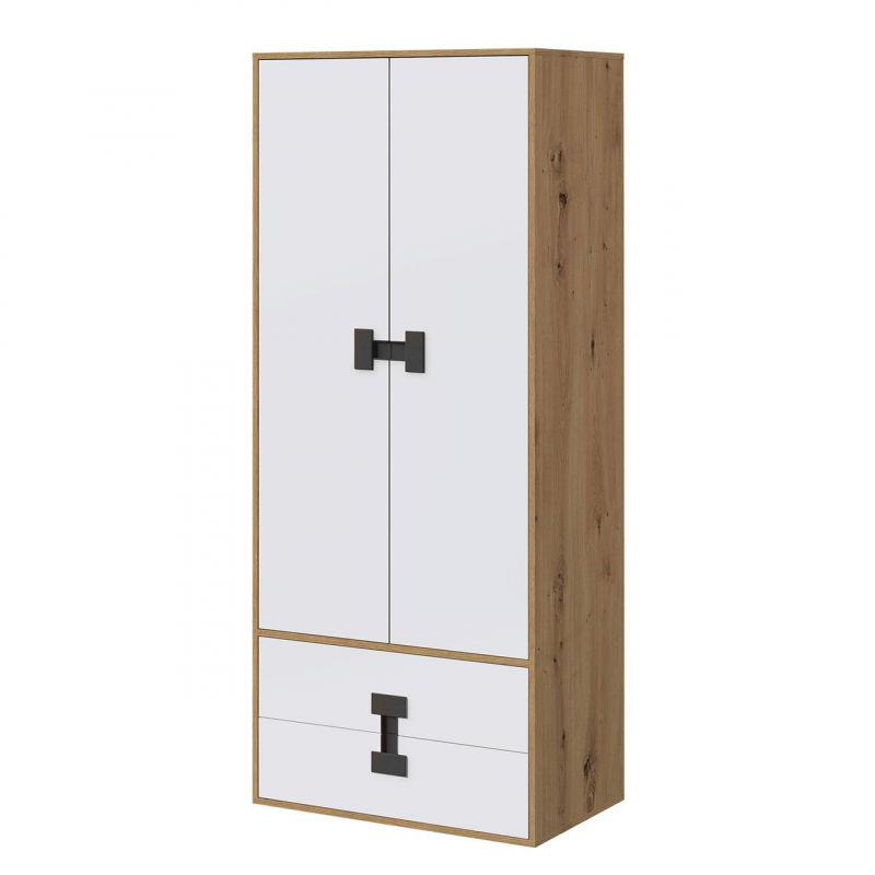 Šatní skříň pro mládež Tikrote 80 TE01 se vyznačuje moderním designem a zajímavými barvami. Úchyty v černé barvě dodávají šatníku dekorativní akcent. Vnitřek skříně ukrývá velký úložný prostor pro dětské oblečení a hračky.