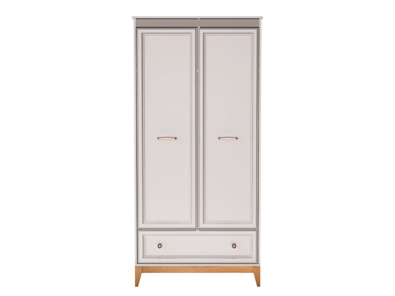 Šatní skříň Stebin SE10 na nožičkách dodá vaší ložnici nebo šatně elegantní vzhled. Pomůže vám uspořádat si oblečení a spodní prádlo. Klasický a zároveň moderní design je patrný ze zlato-měděných úchytek a kašmírové povrchové úpravy.