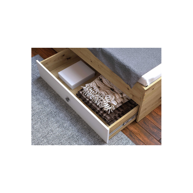 Postel Wurak je vybavena příčkovým rámem a prostornými kontejnery na lůžkoviny ve formě zásuvek.