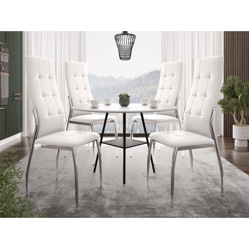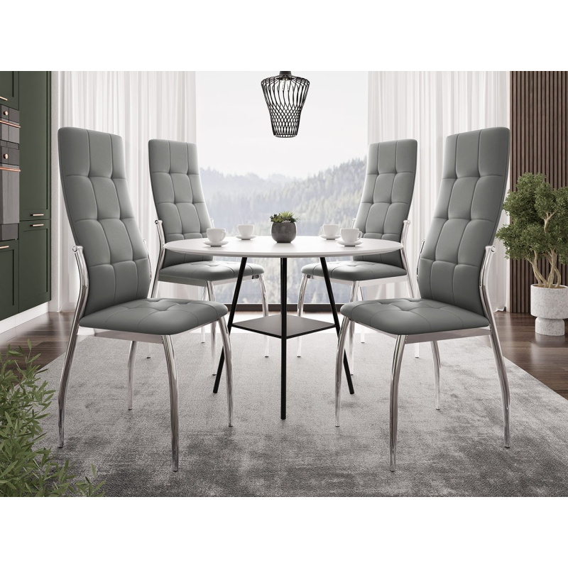 Díky dekorativnímu prošívání a kovovému rámu v chromovém provedení židle dokonale ladí s různými typy interiérů, od moderních až po tradičnější. Díky svému univerzálnímu designu budou dokonalým doplňkem jídelny i obývacího pokoje.