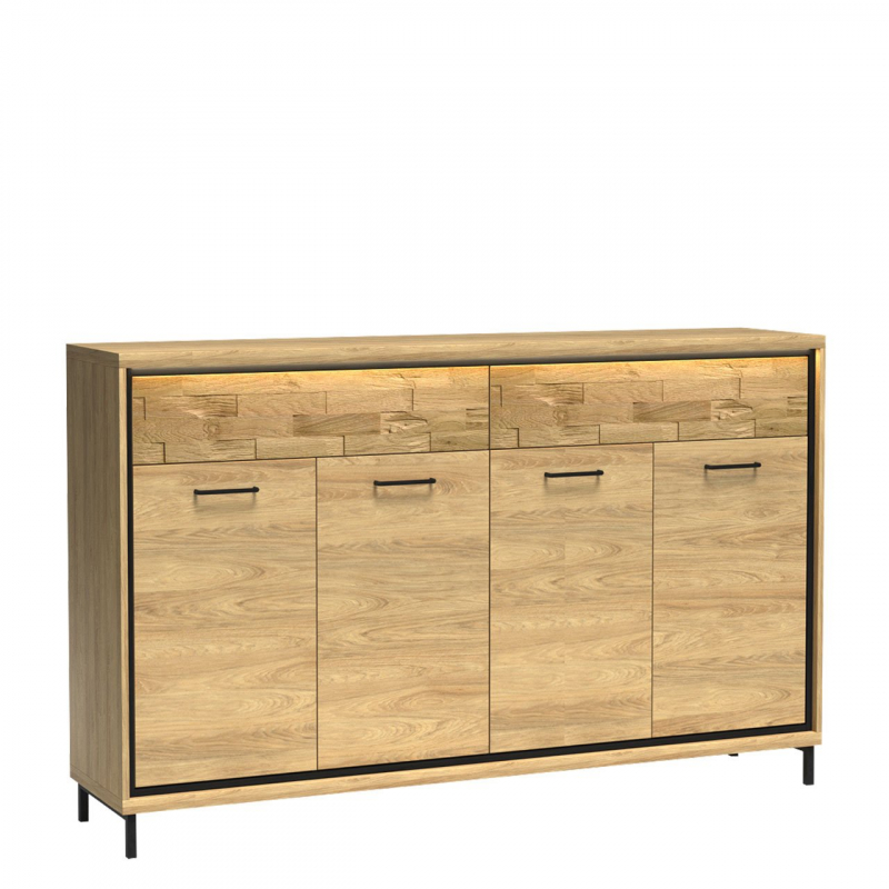 Komoda je vyrobena z masivní laminované desky a MDF lišt, zaručujících vysokou kvalitu a bezvadný vzhled na léta.