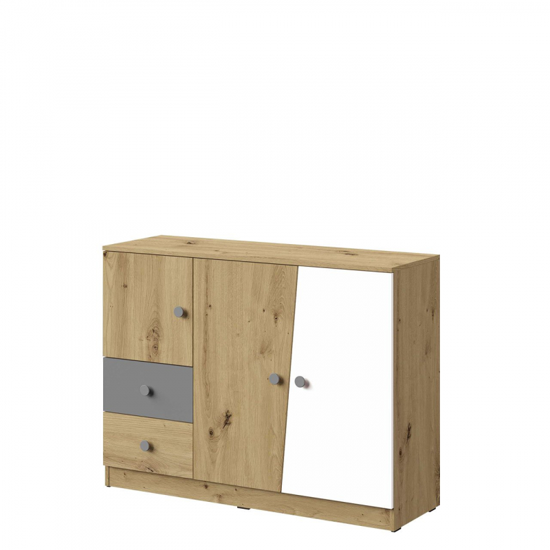 Komoda z kolekce nábytku pro mládež Mauve je neodolatelně okouzlující a má široké uplatnění. Tento kus nábytku se svým tvarem a barvami přizpůsobí téměř každému interiéru – malému i prostornějšímu. Je vyrobena tak, aby poskytovala dostatek úložného prostoru. Naleznete zde mimo jiné: prostorné skříňky a zásuvky, které vám umožní snadné uspořádání věcí.