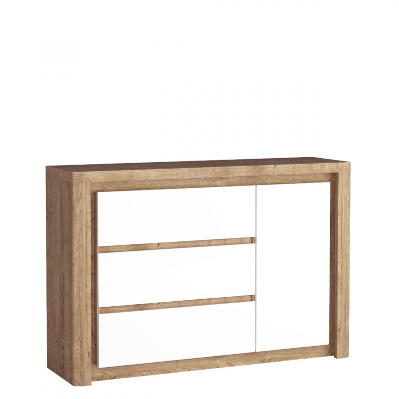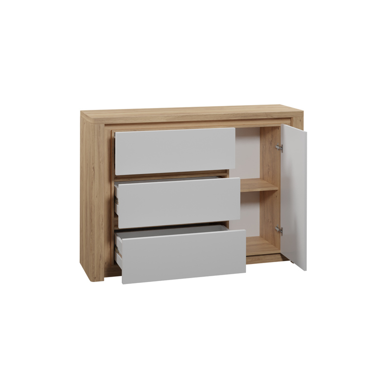Komoda Domardon DM15 je kus nábytku, který má být praktický i estetický. Úspěšně jej můžete umístit do obývacího pokoje, obývacího pokoje či ložnice, přičemž poskytne dostatečný úložný prostor.