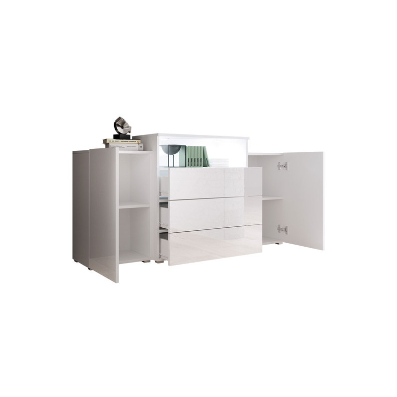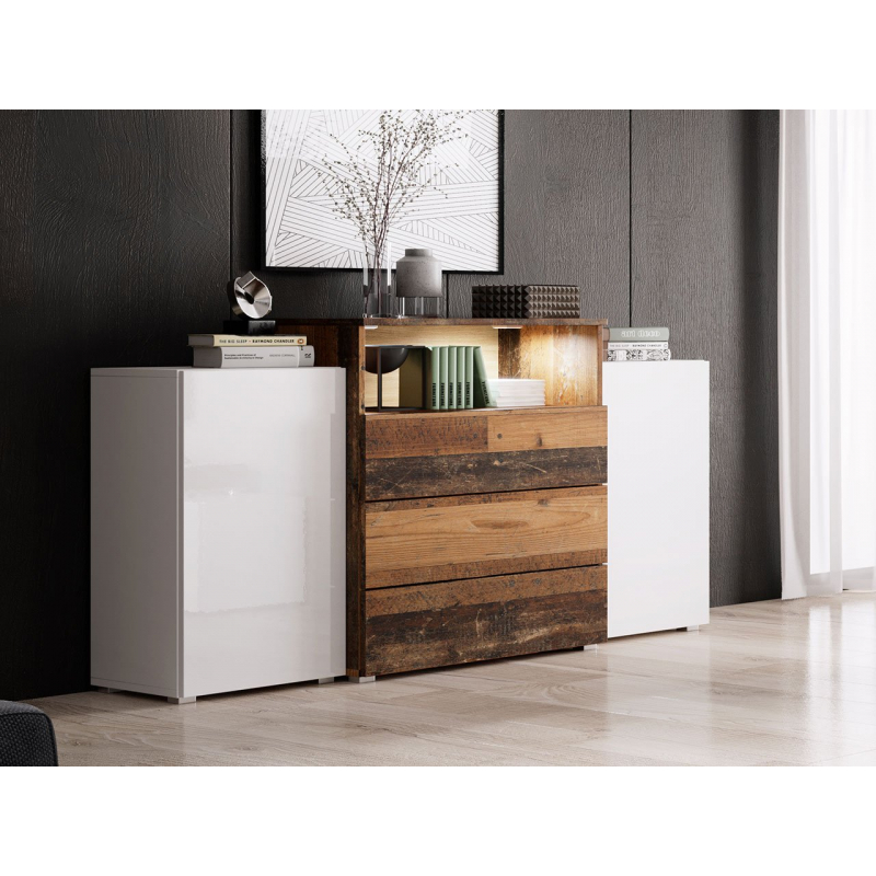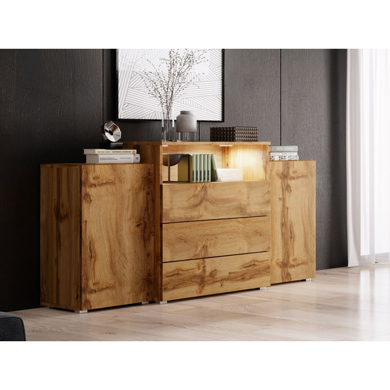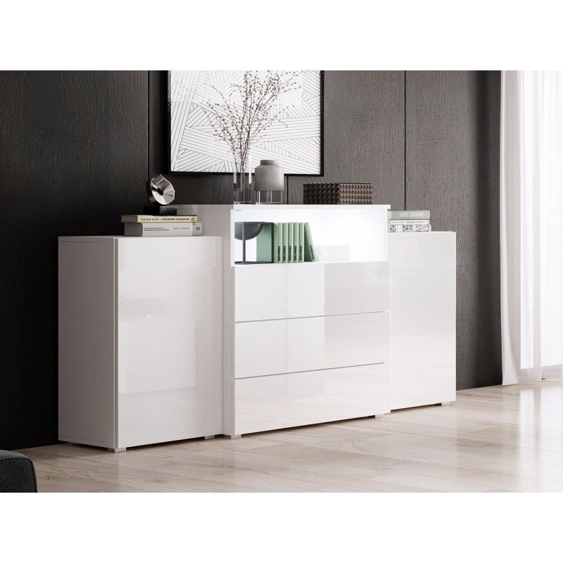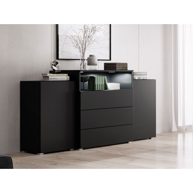 Chytře řešený úložný prostor je zodpovědný za zvýšenou funkčnost komody. Boční skříňky jsou praktickým úložným prostorem pro větší předměty a uprostřed umístěná řada zásuvek je praktickým úkrytem pro často používané příslušenství a pomůcky. Každá ze zásuvek se snadno otevírá díky systému push to open.