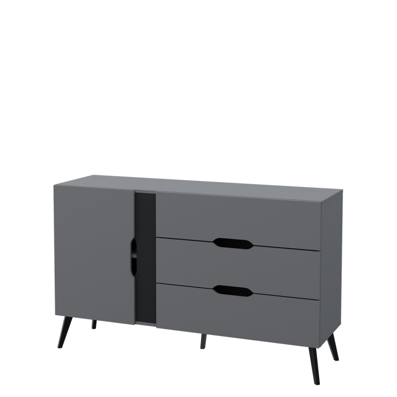 Komoda Motez 1D3S je elegantní a funkční kus nábytku, který skvěle doplní dekor vašeho interiéru. Tmavá barva předních částí dodává moderní charakter. Hodí se do klasických i současných aranžmá.