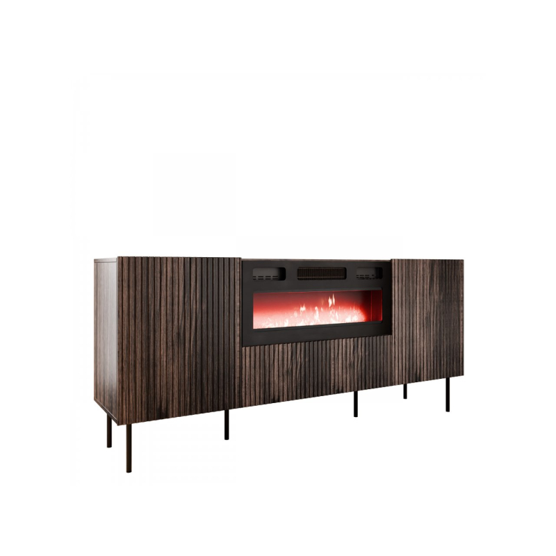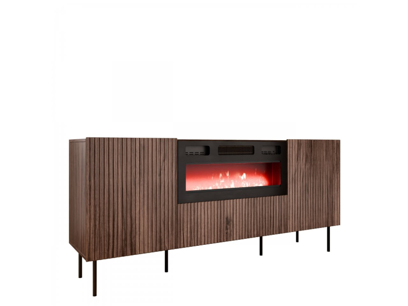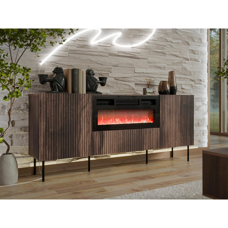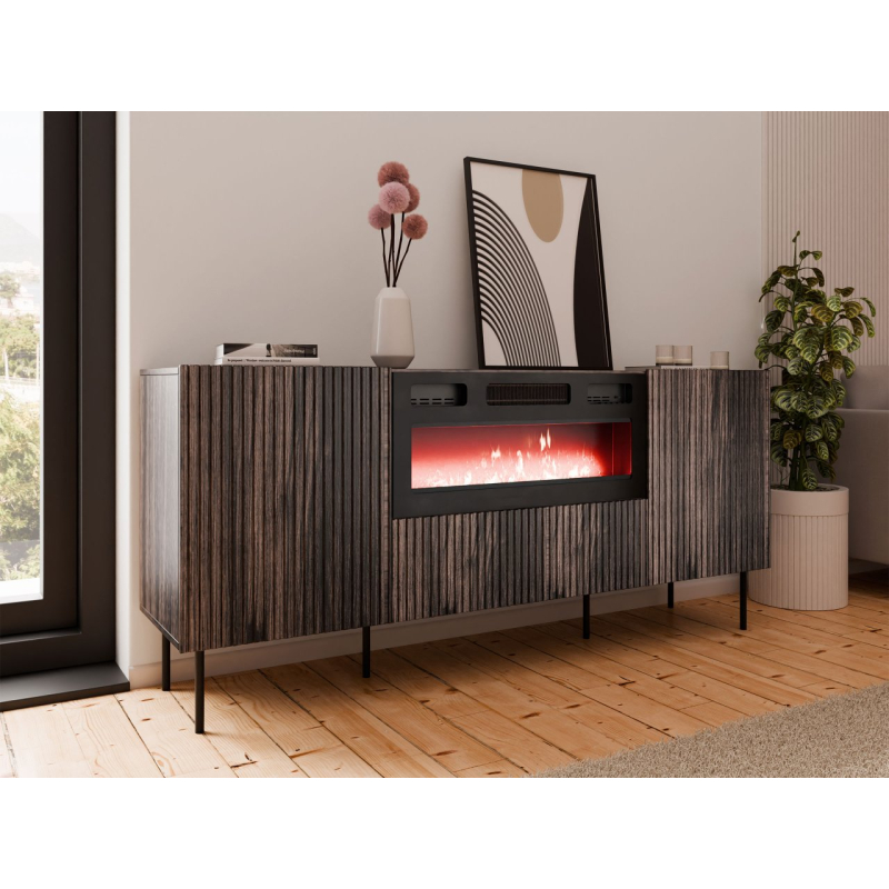 Hlavní dominantou komody je vestavěný elektrický krb s realistickým LED plamenem, který dodává interiéru útulnost a šarm. Disponuje funkcí ohřevu s regulací teploty. Ideální pro chladnější podzimní a zimní odpoledne.