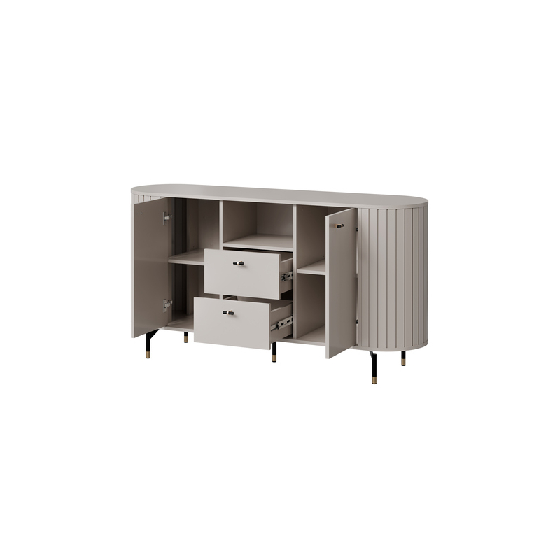 Široká komoda Terkiro 150 2D2S TR02 dodá vašemu interiéru nádech stylu. Její jedinečný design zkrášlí váš obývací pokoj, ložnici nebo chodbu a dodá jí eleganci a funkčnost.
