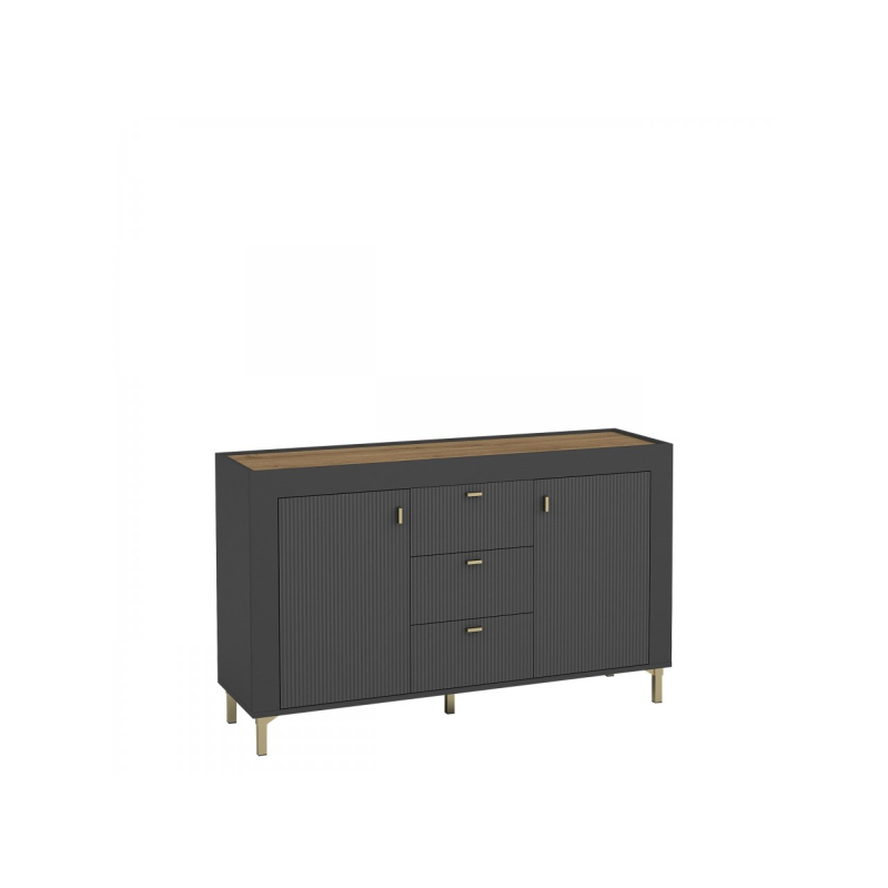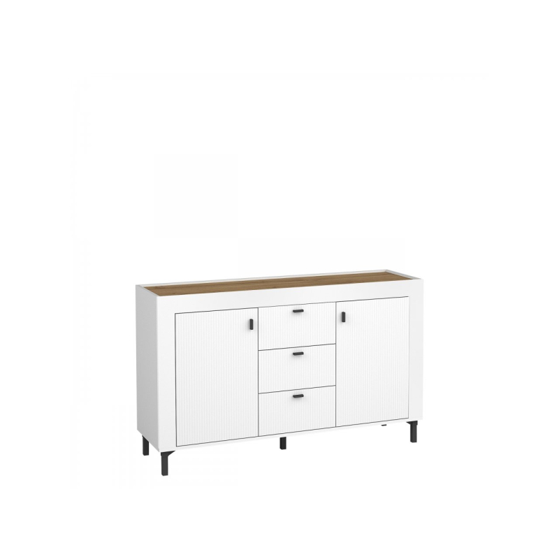 Komoda do obývacího pokoje nabízí uživatelům dvě prostorné skříně, které jsou ideálním místem pro uložení oblečení nebo větších předmětů, jako je lůžkoviny, úklidové doplňky nebo jiné drobnosti. Komoda má také tři zásuvky. Jsou navrženy s ohledem na snadný přístup. Kompaktní, výsuvné úložné přihrádky poskytují praktické uložení věcí každodenní potřeby.