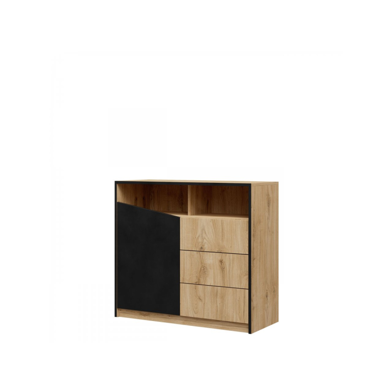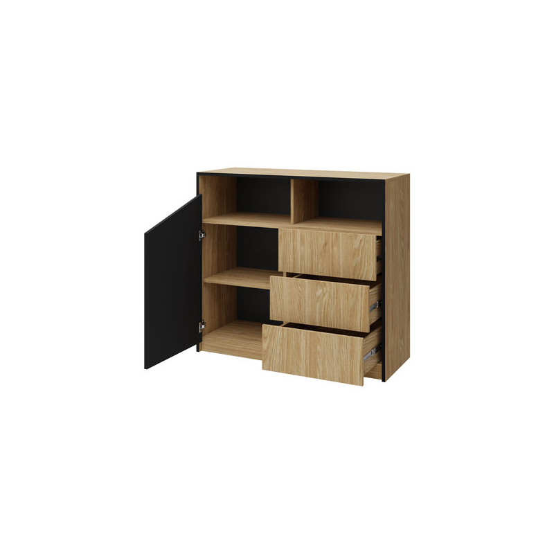 Komoda se bude skvěle hodit do ložnice nebo obývacího pokoje zařízené v trochu klasičtějším stylu. Model je vybaven dvěma způsoby otevírání. Má systém push to open v zásuvkách a vyčnívající čela ve dveřích. Je také vybaven panty s měkkým zavíráním.