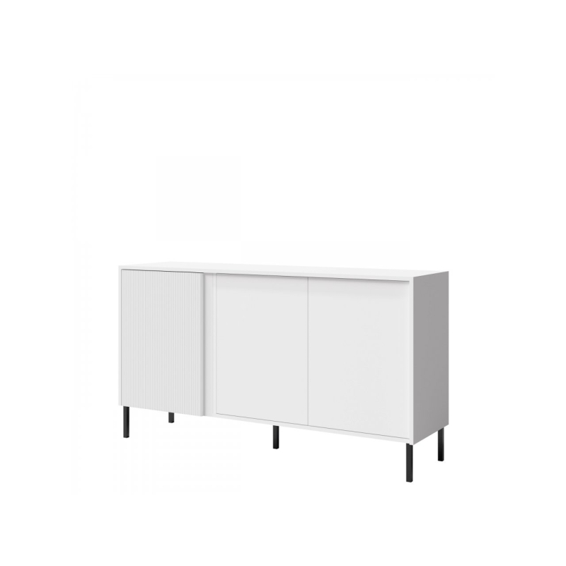 Minimalistický design a maximální funkčnost jsou dva hlavní znaky, které definují komodu do obývacího pokoje Steraen SE02. Tři prostorné skříňky poskytují ideální úložný prostor do obývacího pokoje, ložnice nebo chodby. Jemné rýhování na jedné z předních líc odlišuje komodu od klasických modelů a vytváří jedinečný dekorativní akcent. Vysoké nohy dodávají kusu nábytku lehký vzhled. Elegantní přední tváře bez úchytek zdůrazňují decentní styl této komody do obývacího pokoje. Systém „push-to-open“ zajišťuje snadné otevírání.